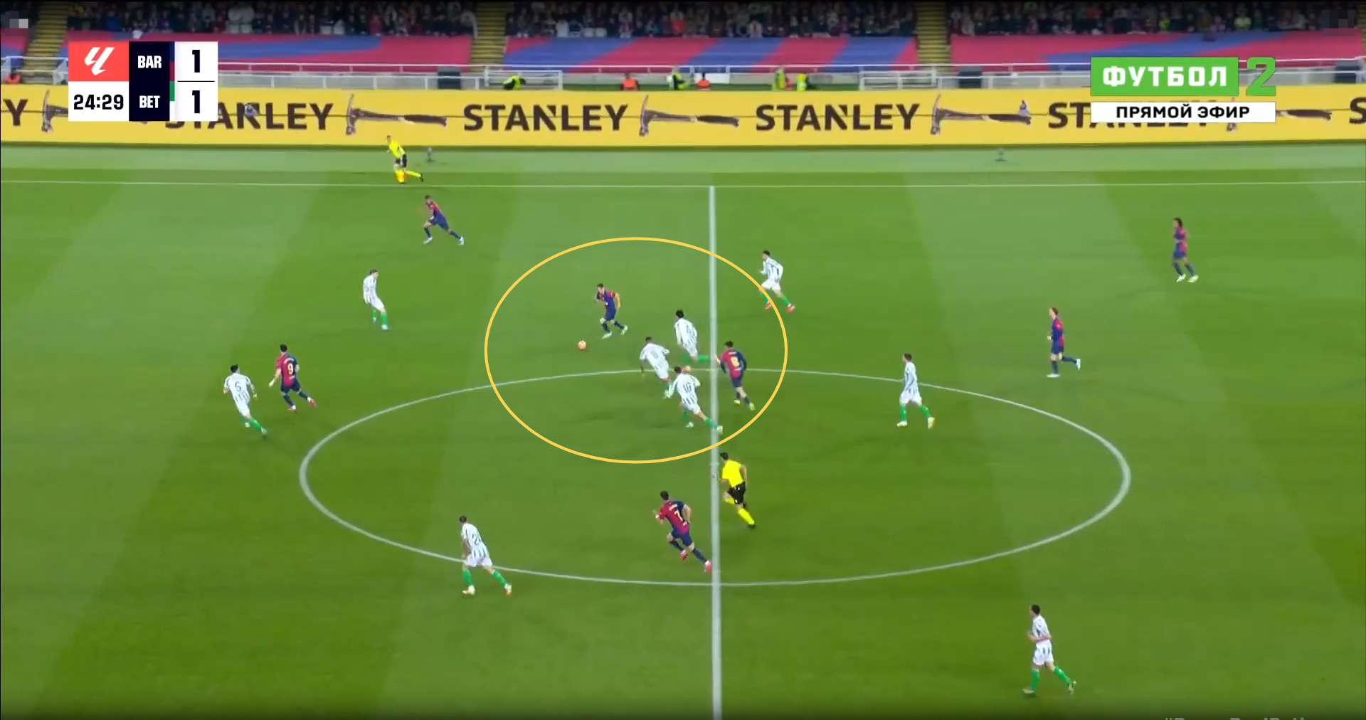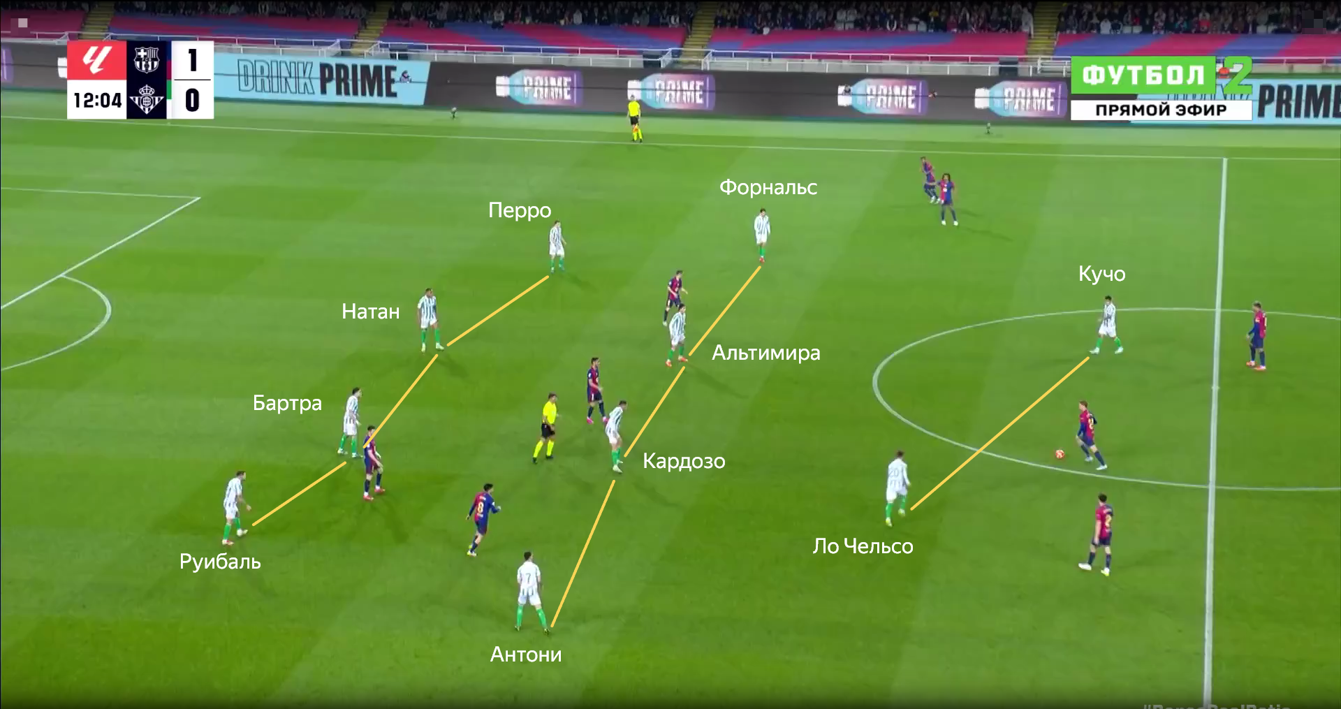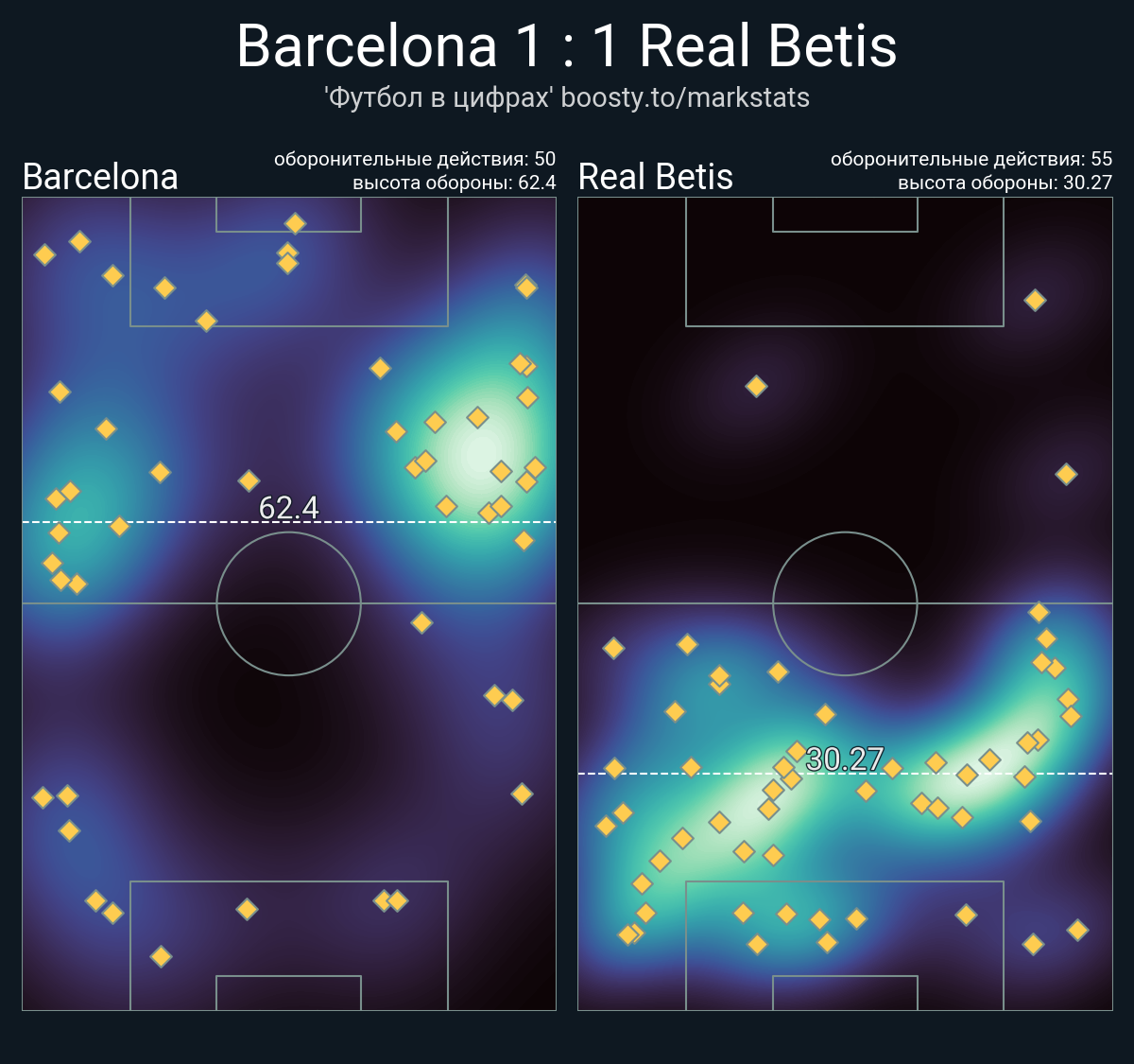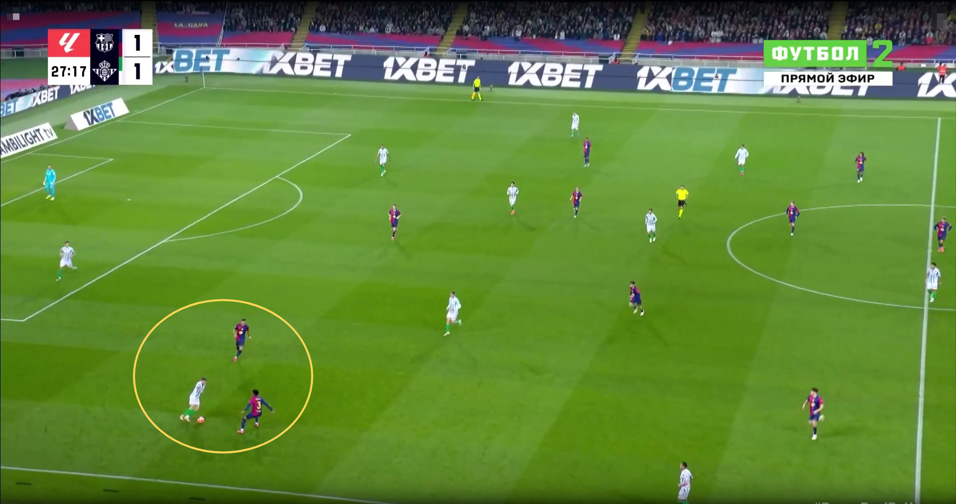 Против «Барселоны» севильцы полностью сосредоточились на обороне. Команда Флика тотально контролировала мяч (73.3%) и территорию (наклон поля – 85.6%). По касаниям в чужой штрафной также заметное преимущество хозяев (51 – 12).