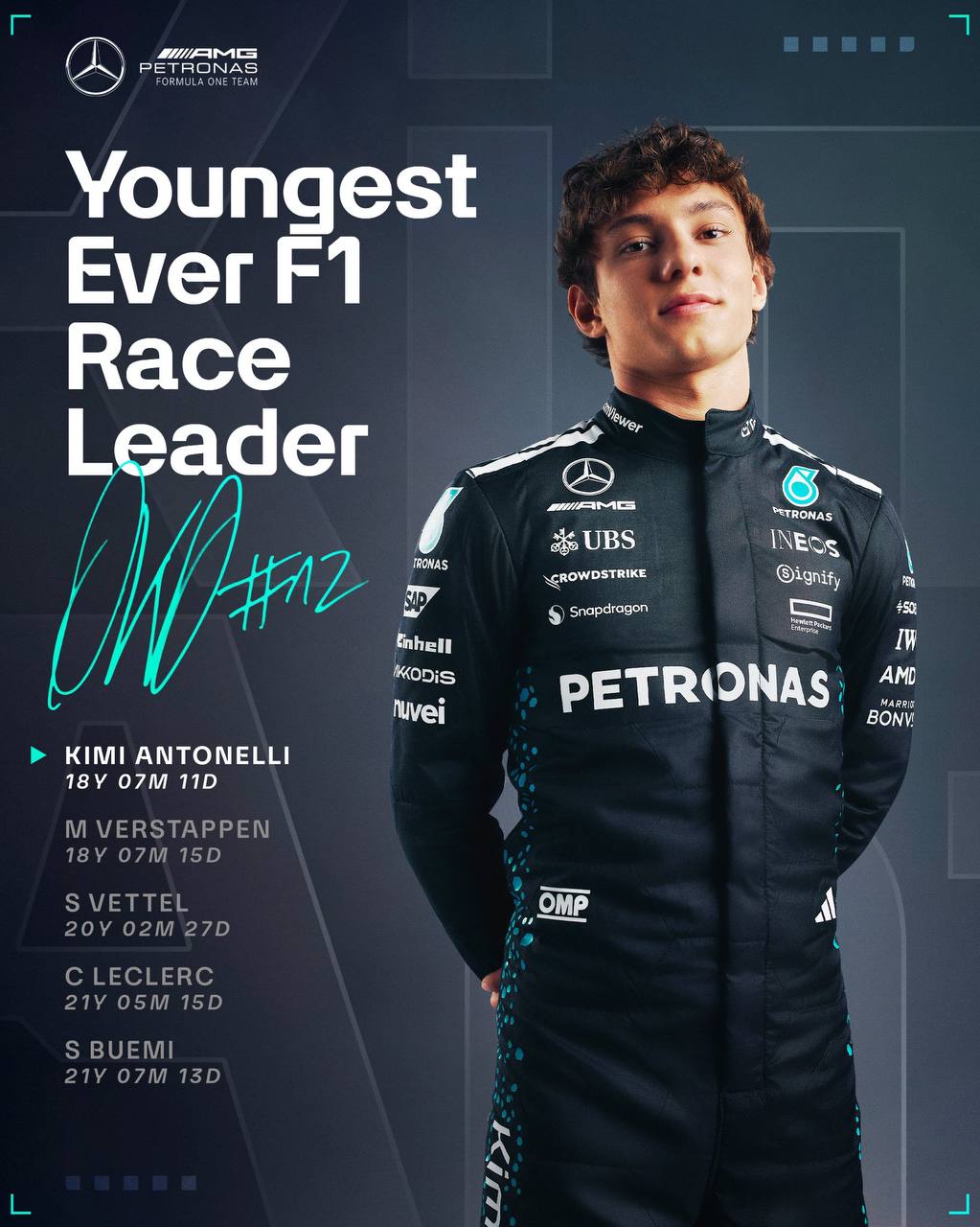 👦 Андреа-Кими Антонелли стал самым молодым лидером гонки в истории Ф-1.