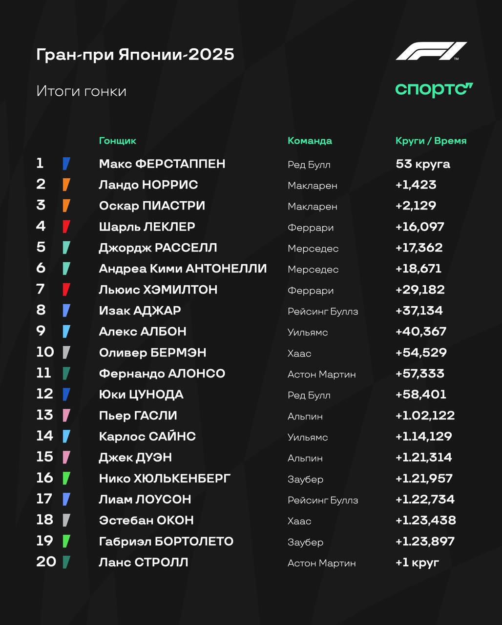 🏎️Вот и прошла гонка на Сузуке. Скучная по правде говоря... Вот её результаты: