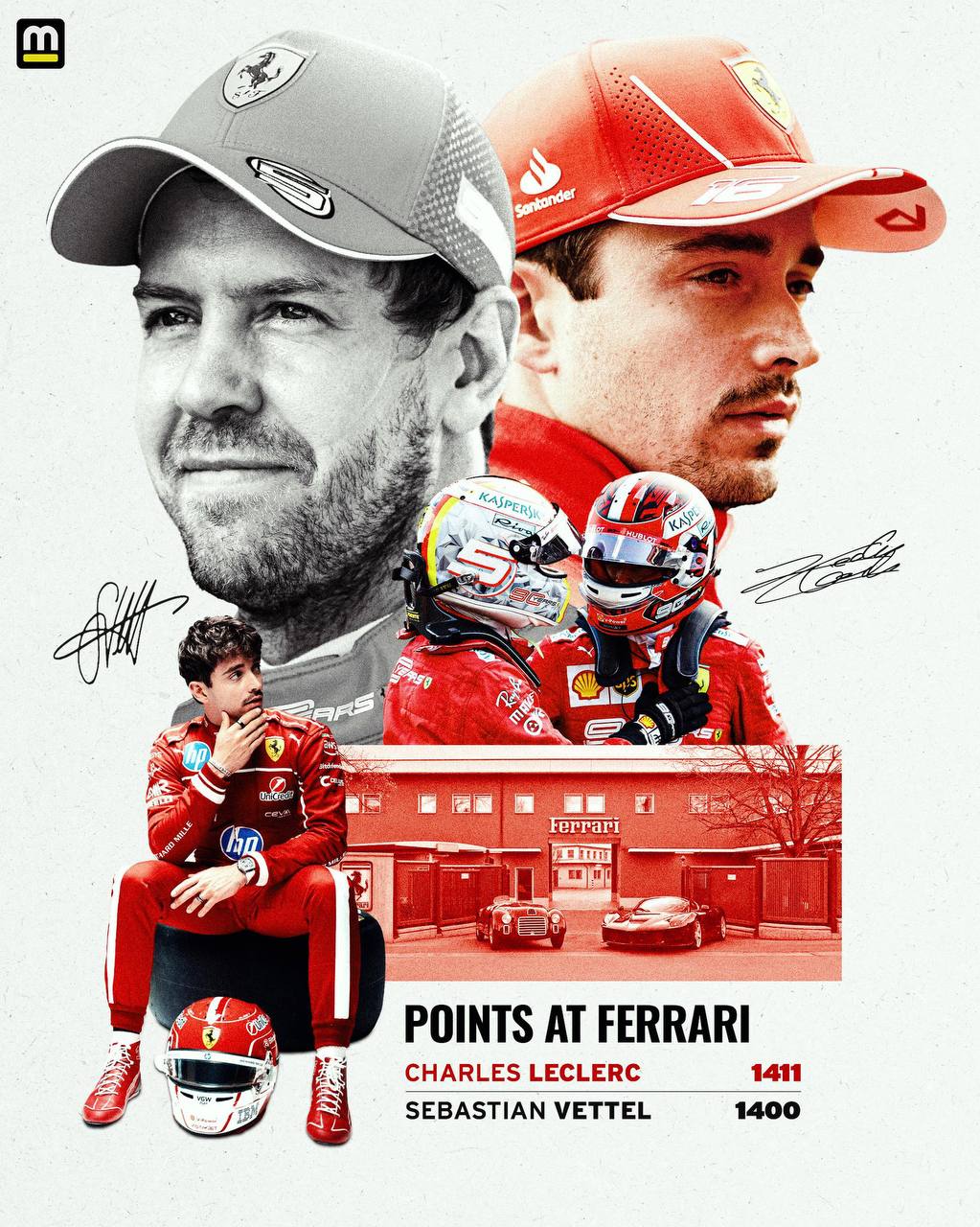 🍾 Шарль Леклер мог сделать это две недели назад, но получил дисквалификацию... Теперь официально монегаск превзошёл Себастьяна Феттеля в количестве очков за «Скудерию Феррари».