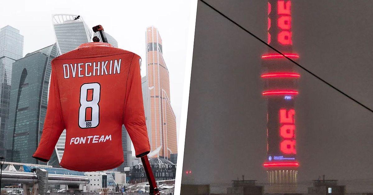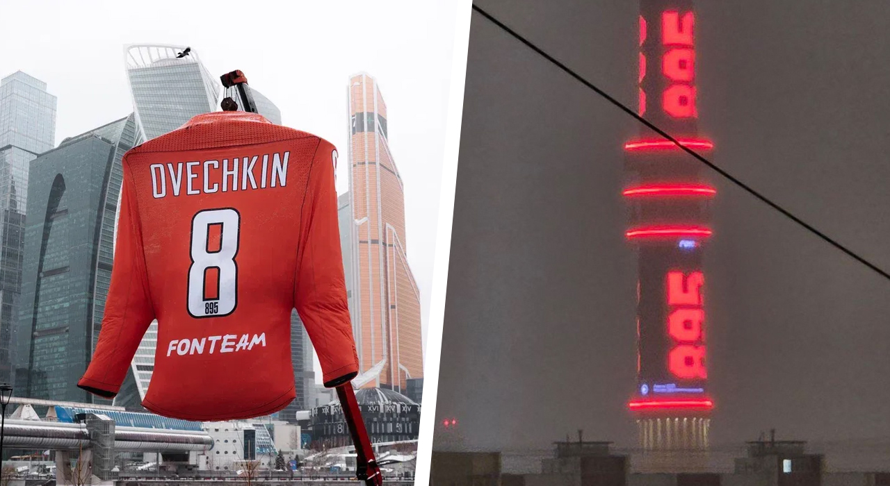 Рекорд Овечкина окружал аудиторию не только в онлайне. В родной для Александра Москве Останкинская телебашня вывела на фасаде фотографию форварда с числом 895. А бук-партнёр Ови провёз по знаковым локациям города огромные джерси с фамилией и номером рекордсмена.