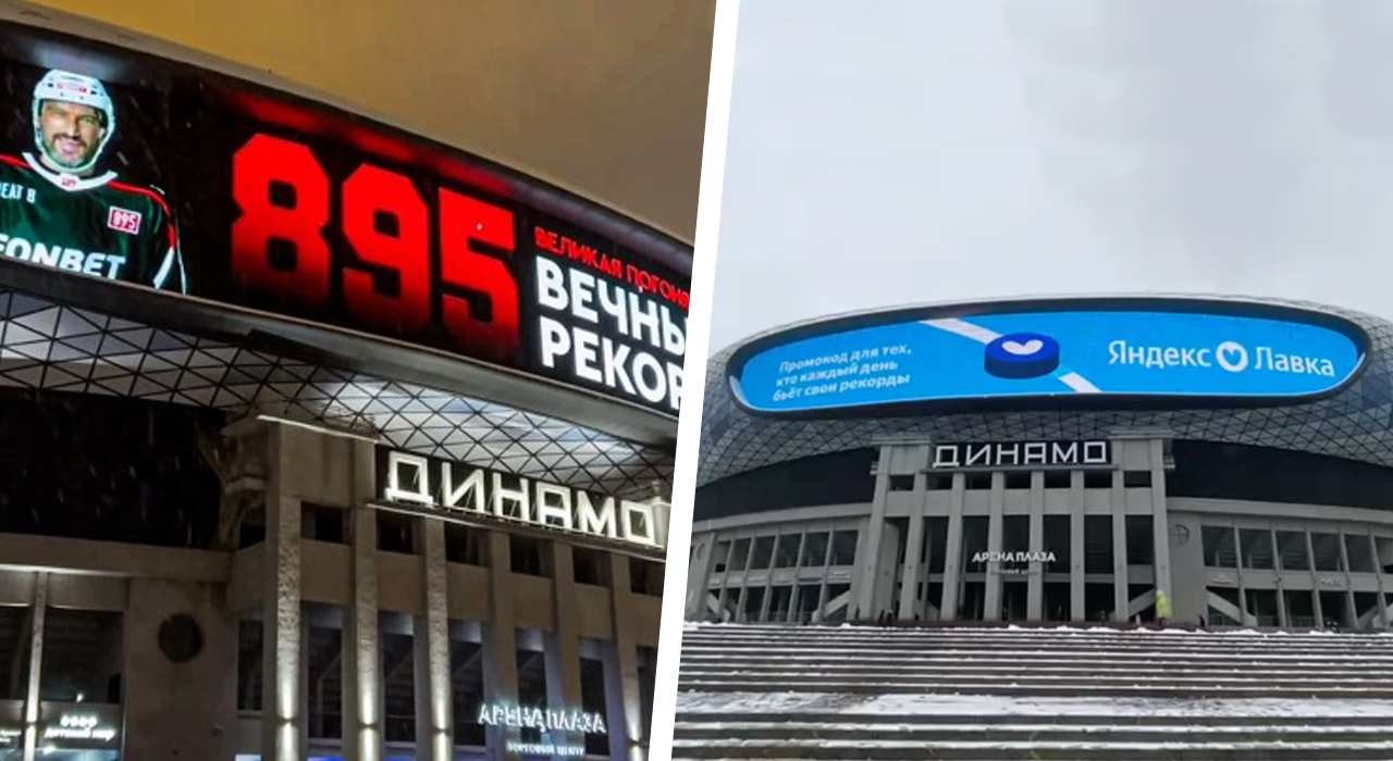 Опять же отметился Яндекс. На медиафасаде динамовской «ВТБ Арены» появилось промо «Лавки» со словами «Для тех, кто каждый день бьёт свои рекорды». Также арену бело-голубых использовал всё тот же красно-белый бук – «Александр Овечкин навсегда первый».