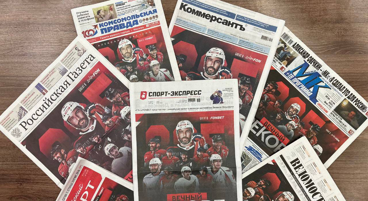 Первые полосы печатных изданий тоже занял Овечкин. Это крутая идея красного букмекера.