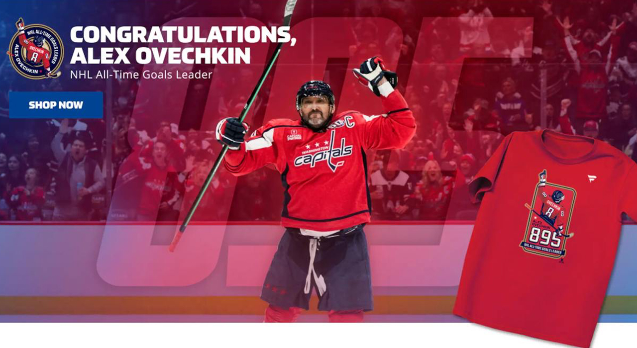 Эпицентр праздника и заработанных денег, разумеется, был за океаном. В американских лигах очень любят ситуативный мерч, поэтому не было никаких шансов, что в честь Овечкина не сделают футболки, кепки и разные аксессуары. Всё что связано с хоккеистом и его рекордом моментально превращается в контент и товар. И люди готовы за это платить, ведь они покупают кусочек истории.