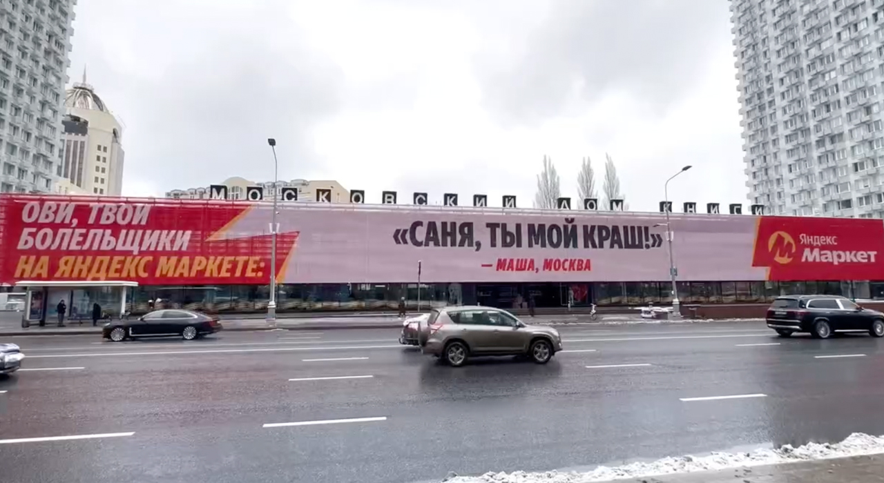 «Яндекс.Маркет» собрал более 35 тысяч сообщений от болельщиков, а часть из них вывел на фасад Дома Книги в столице.