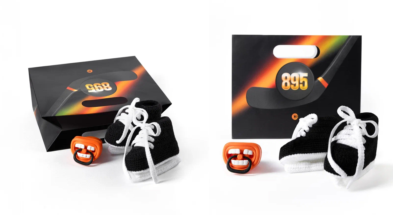 Дети, родившиеся в Москве в день рекорда, получат специальный подарочный набор от Кинопоиска – пинетку ручной вязки в виде коньков и соску с фирменной улыбкой Овечкина. Для получения набора нужно лишь заполнить форму на сайте сервиса.