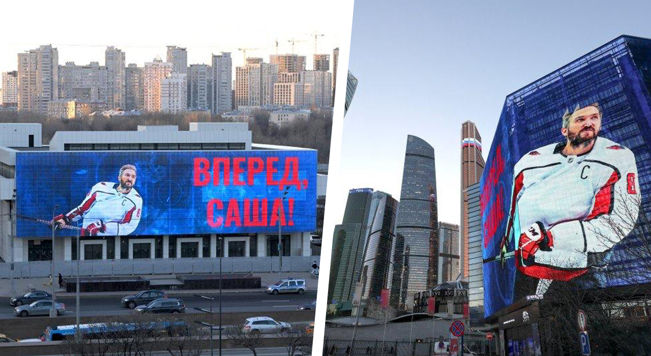 Фотографии Овечкина можно было встретить не только на спортивных объектах. Примеры из Москвы.