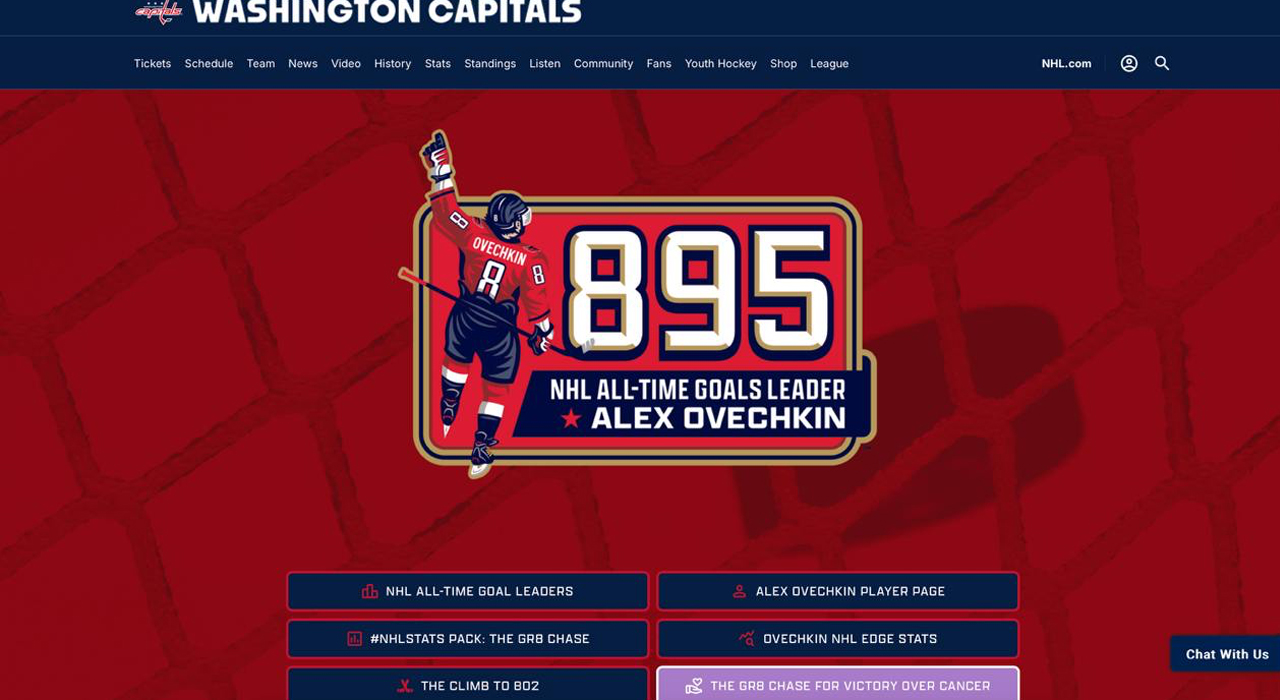 Также «столичные» подготовили классный лендинг, на котором рассказывают, как россиянин шёл к рекорду и показывают его ключевые голы. Здесь чувствуется, что Овечкин это и есть «Вашингтон».