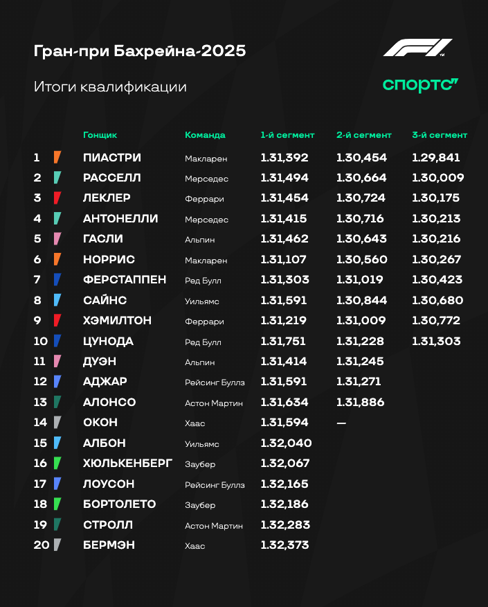 Расселл и Антонелли не врывались в топы доминирования по секторам или в определенных статьях темпа (вроде поворотов или прямых), зато стабильный перфоманс 2-3 уровня позволил собрать результат с минимумом ошибок. Болид позволяет рисковать, и парни выжимают из него чуть-чуть сверху.