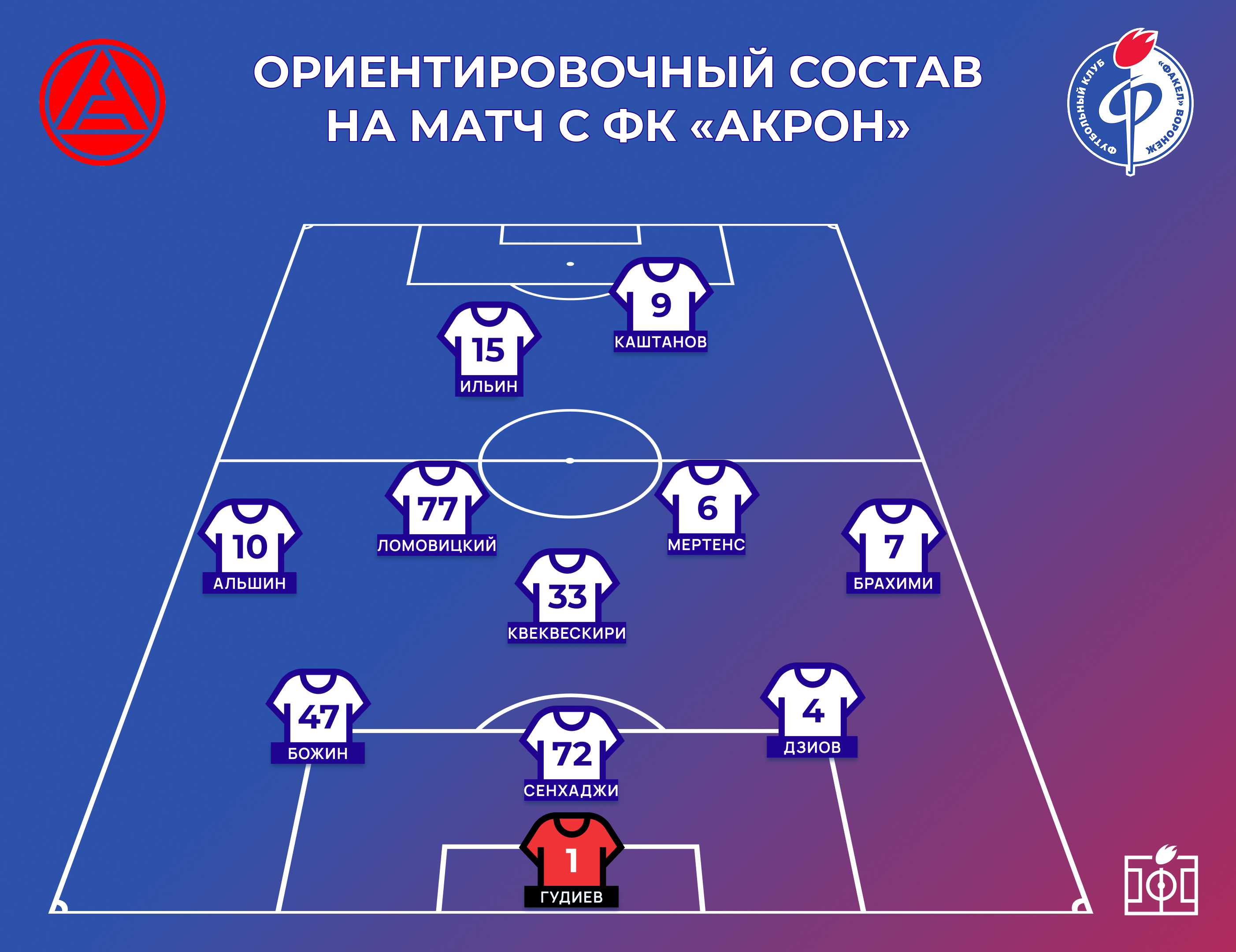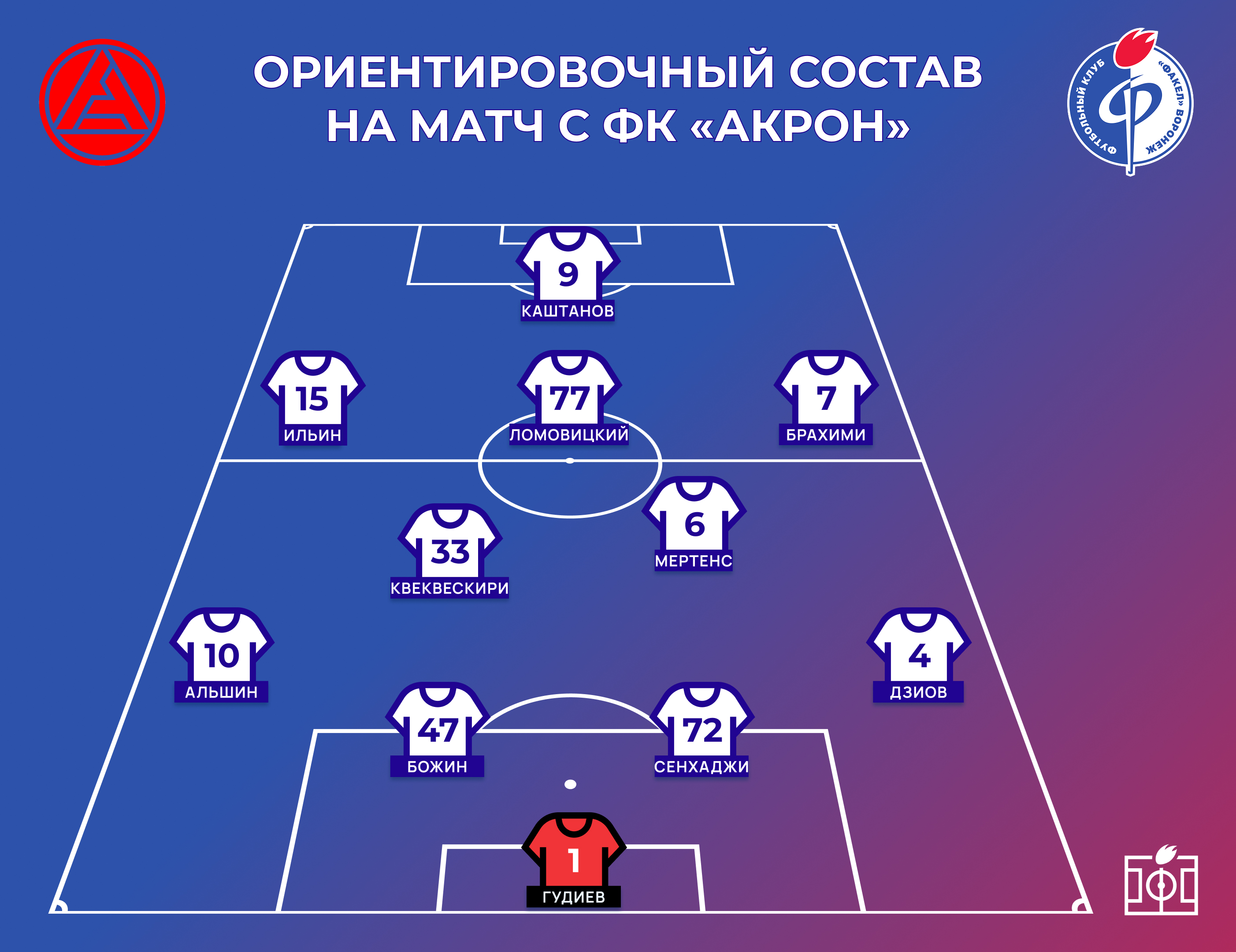 В превью к матчу с «Ахматом» мы уже рассуждали о возможном выборе игроков для этой формации, однако давайте рассмотрим более сбалансированный, на мой взгляд, вариант состава на матч с «Акроном»: