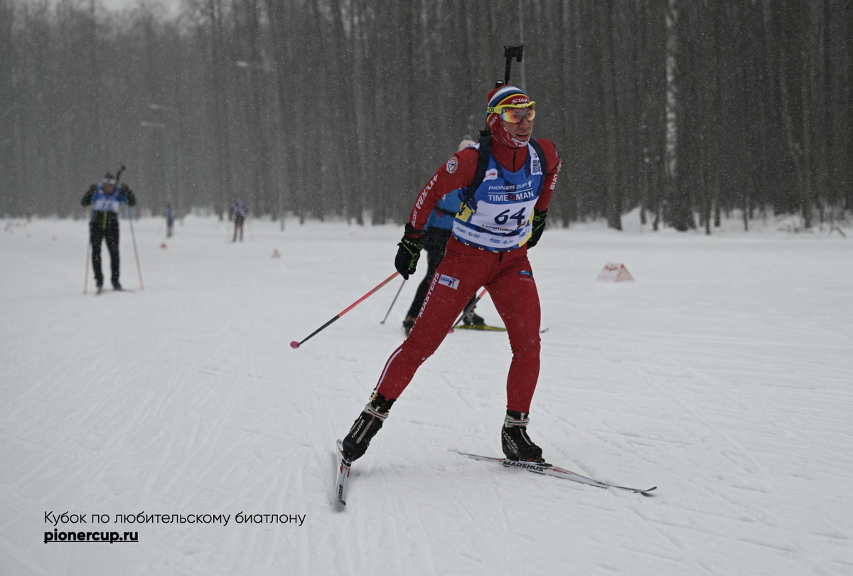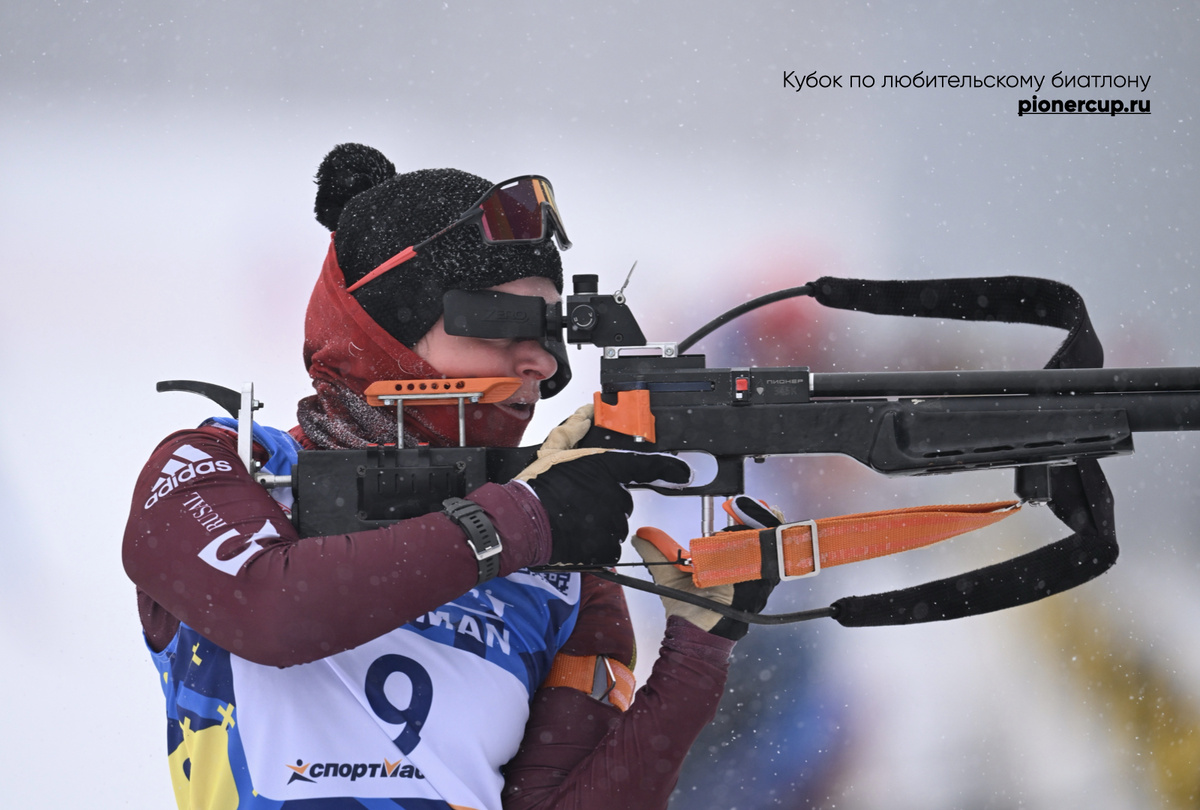 Второе место заняла Виолетта Сидорова, клуб Skination. Она допустила всего лишь три промаха на первой и четвертой стрельбе. Отличный результат, тем более в таких сложных погодных условиях. Итого 52 минуты 23 секунды.