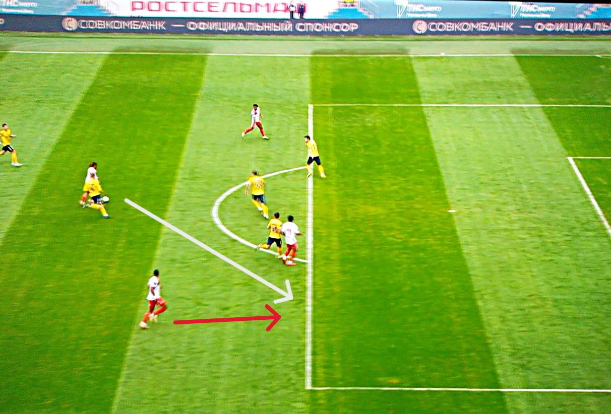 Абена: отличный матч суринамца. «Съел» всё нападение Ростова. Как я уже писал в межсезонье, если бы у Абены была школа и первый пас, то играл бы в условном Реале. По многим качествам он превосходит того же Бабича. Для примера, атака Ростова (Фото 14), где игроки нападения отыгрываются в стеночку, а Абена успевает перестроиться, чтобы догнать своего визави и выбить мяч
