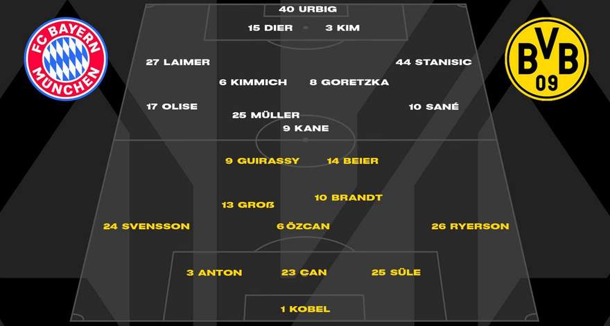 Ничья в Леверкузене предоставила прекрасный шанс «Баварии» оторваться от «Байера» на 8 очков, что за 5 туров до конца является серьезным преимуществом в борьбе за чемпионский титул. Мюнхенцы же субботним вечером в центральном матче тура на своем родном стадионе «Альянц-Арена» в Мюнхене принимали дортмундскую «Боруссию». Главный тренер хозяев Венсан Компани не мог рассчитывать на услуги Бухманна, Дэвиса, Ито, Мусиалы, Нойера и Упамекано: Йонас Урбиг, Конрад Лаймер, Эрик Дайер, Ким Мин Дже, Йосип Станишич, Йозуа Киммих, Леон Горетцка, Майкл Олисе, Томас Мюллер, Лерой Сане и Гарри Кейн.
