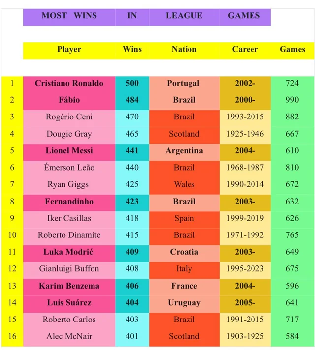 В последнем туре чемпионата Саудовской Аравии «Аль-Наср» со счетом 2:1 победил «Аль-Рияд». Причем оба гола забил Роналду. Эта победа стала 500-й в карьере португальца в 724 матчах в национальных чемпионатах – «Спортинг» (11 побед), «МЮ» (152), «Мадрид» (216), «Ювентус» (69) и «Аль-Наср» (52).
