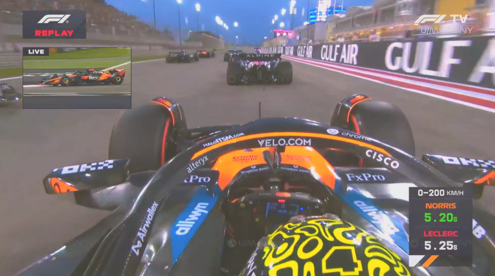 В квалификации к Гран-при Бахрейна в первых двух сегментах Ландо Норрис был в группе лидеров − не выпадал из тройки. Но в третьем допустил ошибку уже в первом повороте − вошел слишком быстро, потерял болид и допустил пробуксовку. Графика показала, что только в этом месте Ландо потерял примерно 0,12 секунды. По итогу он проиграл Пиастри больше − около 0,4 с.