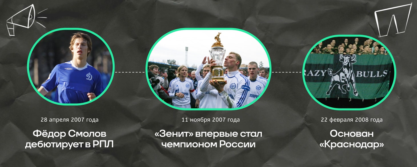 Для контекста: «Зенит» только в ноябре оформит свое первое чемпионство, а Сергей Галицкий лишь в феврале 2008 года начнет строительство «Краснодара».