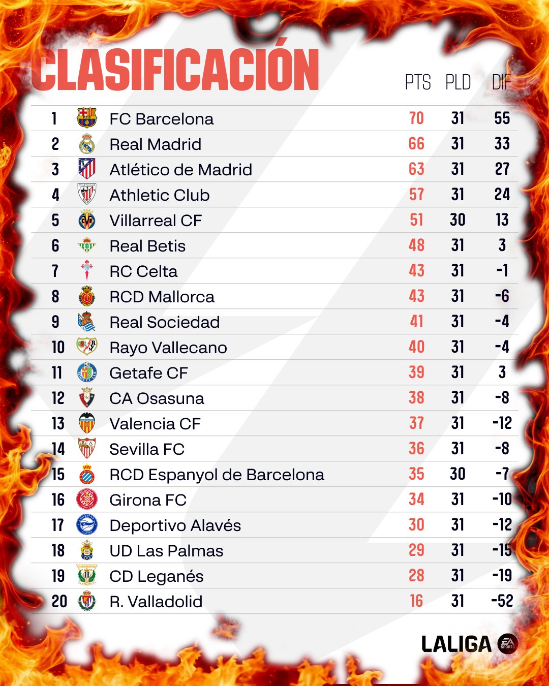 «Осасуна» поднялась на 12-ю строчку и относительно в безопасности, а вот «Жирона» падает все ниже. Каталонцы теперь 16-е, а зона вылета всего в пяти очках – команда не побеждает с начала февраля, на этом отрезке три ничьих и шесть поражений. А ведь впереди команды из первой десятки и «Атлетико» в последнем туре – повод переживать?