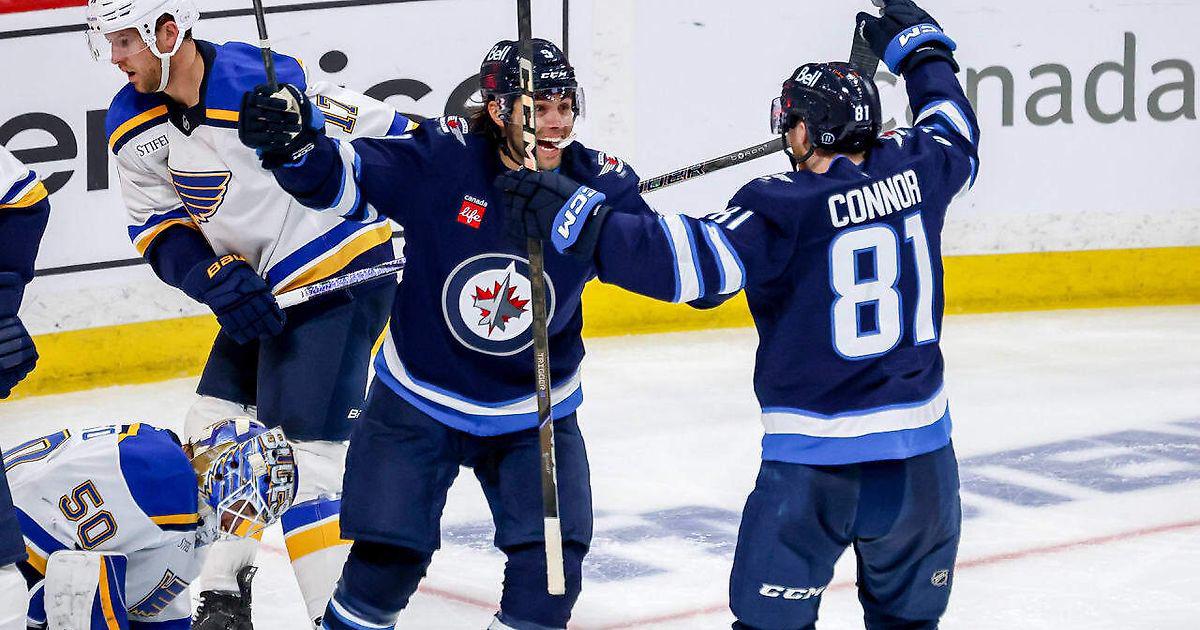 «Виннипег Джетс»-»Сент-Луис Блюз» 5:3. Хозяева в 3 периоде забросили 3 шайбы. Марк Шайфли и Кайл Коннор набрали по 3 очка (1+2), Джош Моррисси отдал 2 результативные передачи, Коннор Хеллебайк отразил 14 бросков. У гостей Джастин Фолк отдал 2 результативные передачи, Павел Бучневич отдал результативную передачу. В конце матча состоялась массовая драка. «Сверхзвуковые» повели в серии 1-0.