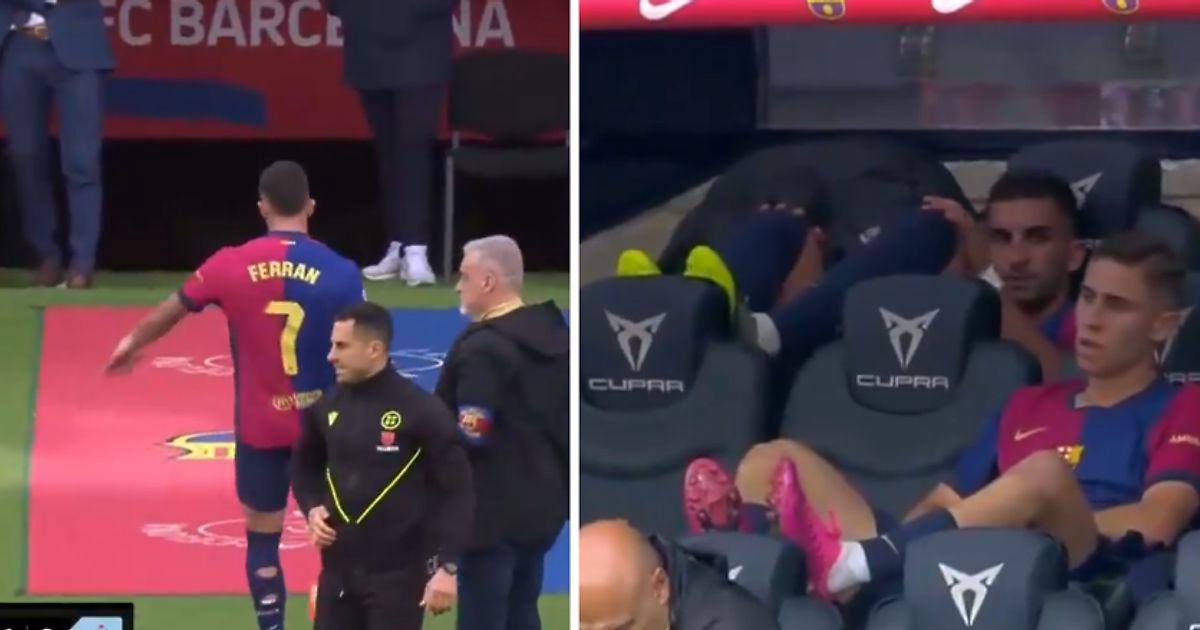 Ферран Торрес, который провел неплохой матч и отметился голом, явно был недоволен своей заменой. Во втором тайме, когда Ханси Флик снял его с игры, Торрес отреагировал резко — пнул мяч и проигнорировал тренера.