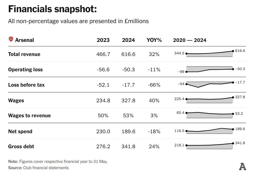 Оригинал статьи - The BookKeeper – Exploring Arsenal’s finances, transfer funds, owner debts and soaring revenues - The Athletic
