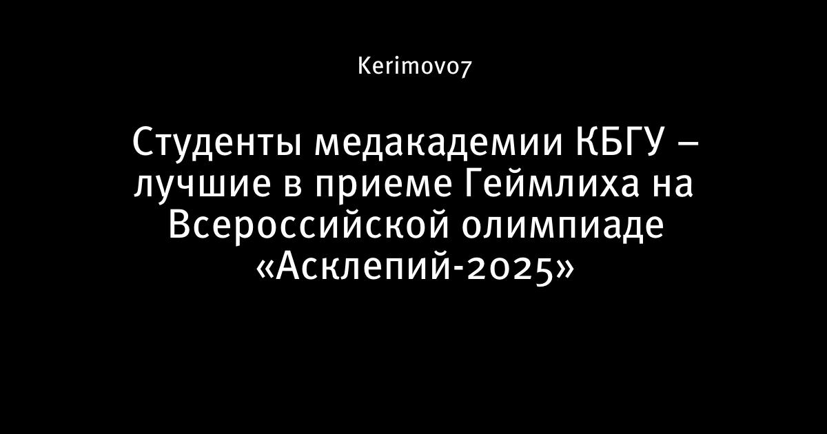 Команда «Эликсир Парацельса» медицинской академии Кабардино-Балкарского государственного университета им. Х.М. Бербекова успешно выступила во Всероссийской олимпиаде по оказанию экстренной и неотложной помощи «Асклепий-2025». Состязания проходили на базе Ставропольского государственного медицинского университета. Студенты КБГУ завоевали диплом в престижной номинации «За лучший прием Геймлиха», продемонстрировав высочайший уровень подготовки и профессионализма.