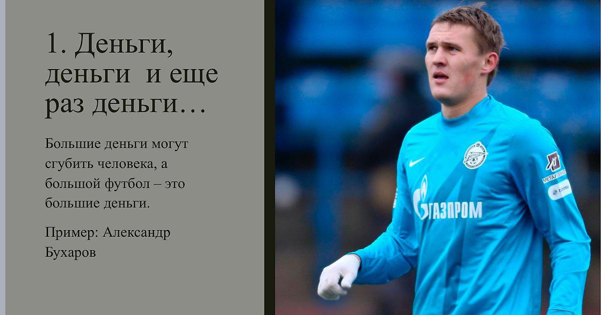 Деньги могут сгубить человека, и футболисты не исключение! Эта проблема наиболее распространена, как бы это ни было печально, в России. Топ клубы часто раздувают зарплаты молодым российским игрокам, т.к. лимит на легионеров, да и вообще, зарплаты футболистов в нашей стране, сильно раздутые. Получая такие деньги, они сразу зазнаются и вместо упорных тренировок начинают клубиться и тусить. Им нет смысла тренироваться, ведь своей цели (больших денег) они и так добились, зачем им дальше прогрессировать. Таких примеров в нашем футболе очень много, всех не перечислить.