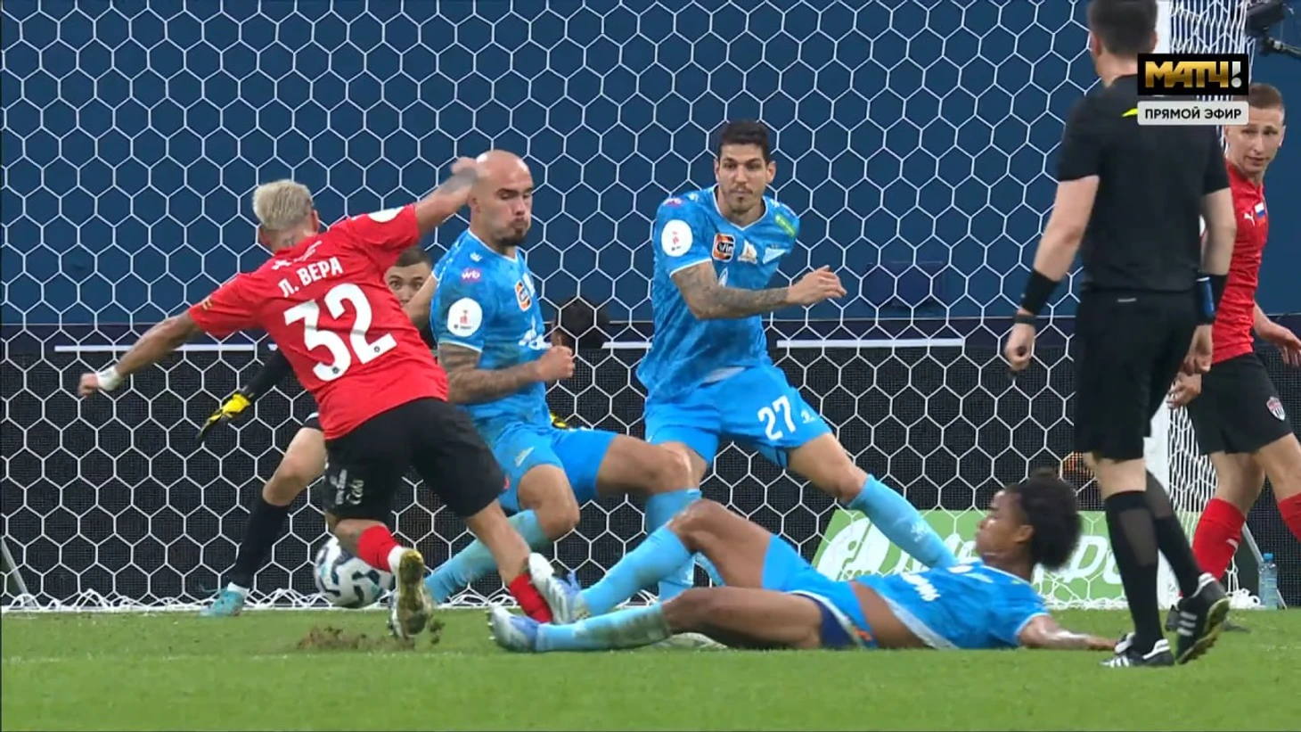 Суббота началась двумя играми в 14:00, в первой из которых играл с московским ДинамоЗенит, обязанный не терять очки в чемпионской гонке с соперниками. И с самого начала встречи петербуржцы начали активно бороться за инициативу, часто запирая динамовцев на своей половине поля без мяча. Самый дорогой игрок РПЛ Луис Энрике на правом фланге атаки регулярно обыгрывал профильного центрального защитника Фернандеса, вынужденного там играть из-за проблем Динамо с крайними защитниками. Что и привело к быстрому голу после его паса и ударов сначала Мантуана, потом - Глушенкова с «конским» xG (0.66), отраженных Луневым, и наконец добивания Педро. А дальше - полная аналогия с поведением Краснодара в игре с Зенитом после гола - команда Семака отошла на свою половину поля и стала ждать. И дождались под конец тайма - после навеса с края Гладышев очень «по футбольному» попал головой в нижнюю «шестерку» ворот Латышонка. На этом футбол закончился до 80 минуты - когда Гладышев сначала с острого угла на 81, а потом, на 88 минуте - прямо напротив ворот с 13 метров , по воротам не попал. Ну а последний момент имел конечно Соболев - на 90 минуте, но тоже промахнулся. При такой игре казалось арбитру в поле Мешкову и ВАР Москалеву «косячить» было особо негде. Но нет, уже упомянутый в начале статьи Барриос в очередной раз сыграл безрассудно, и в очередной раз не понес никакого наказания