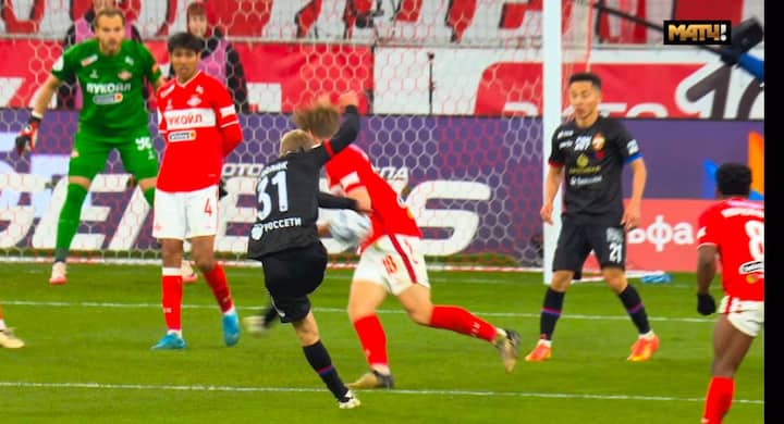 Надеюсь с тем, что ногу Койта Маркиньос в борьбе задевает выставляемой вперед своей, спорить не будет никто? Как и Умяров? Да, это не считаем причиной для пенальти, хотя как тогда оценить назначенный пенальти в прошлом туре в пользу Спартака?
