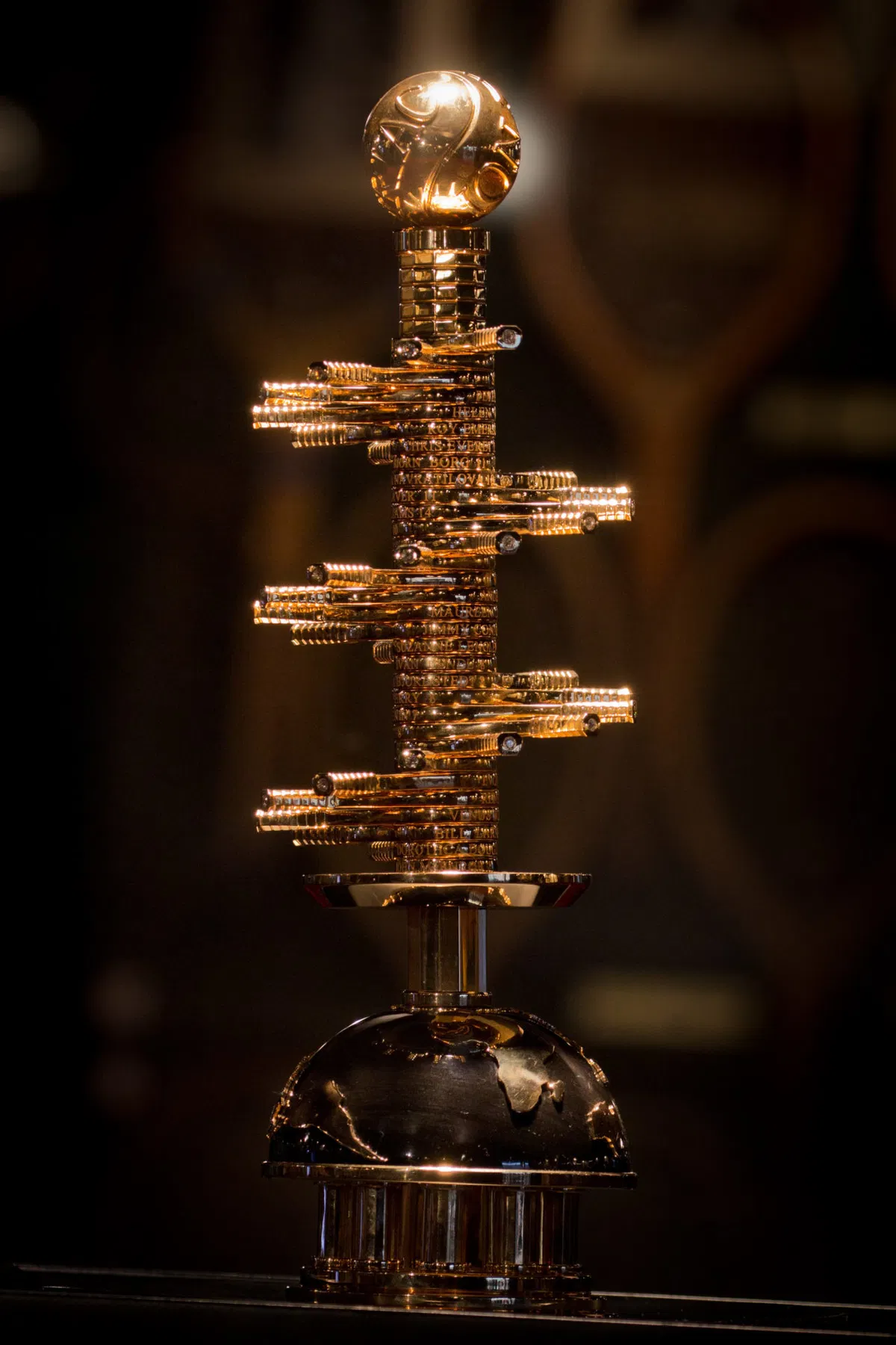 За вдохновением Итен отправился в Каталонию, где арендовал виллу. Там он обнаружил небольшую винодельню, которая производила великолепное вино под названием «Scala Dei» («Лестница в небеса»). Это дало ему идею внешнего вида трофея.