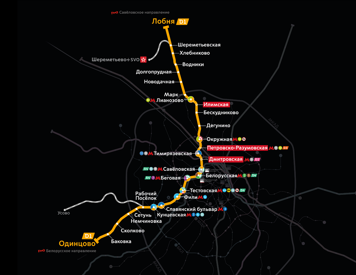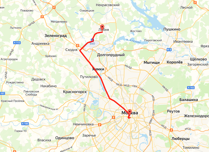 Если ехать с Савеловского вокзала, то время в пути 45 минут, при отправлении от «Делового Центра», на поездку уйдет 65-80 минут с одной или двумя пересадками. Построить маршрут можно на сайте «Мосметро» выбрав место отправления и прибытия.