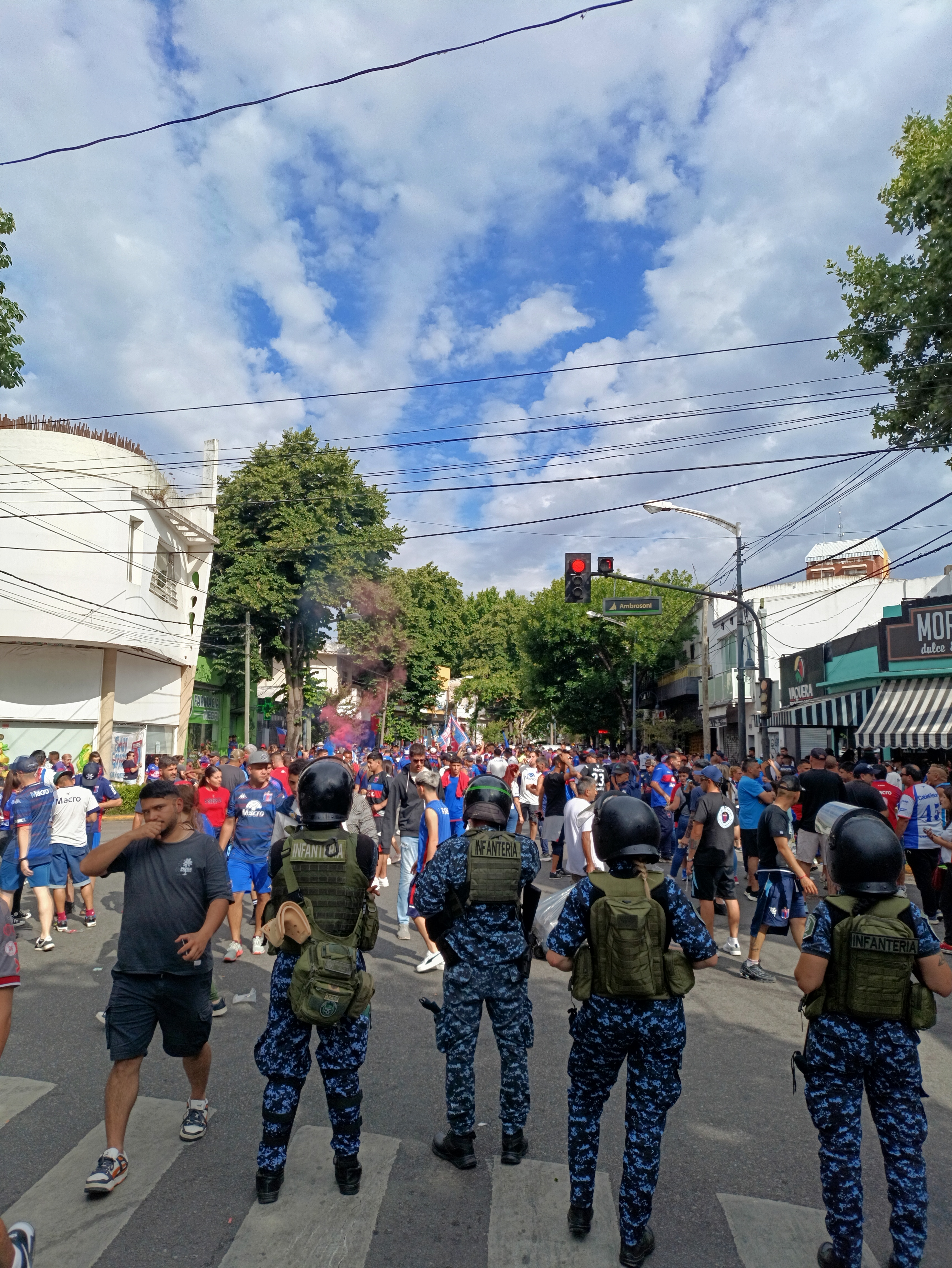 Билеты на матч продавались только на центральную трибуну, на конкретные места, стоили чуть дороже 2000 рублей. Я купил билет и в день матча отправился в Викторию. До самого стадиона из центра Буэнос-Айреса ходит автобус, так что с логистикой тоже все оказалось просто. Как это обычно бывает, в день матча автобус сворачивает с маршрута чуть раньше, чтобы у тебя была возможность пораньше проникнутся футбольной атмосферой. Я шел по главному проспекту Виктории к стадиону, а на тротуарах по обе стороны располагались болельщики в красно-синей форме и распивали традиционные аргентинские напитки.