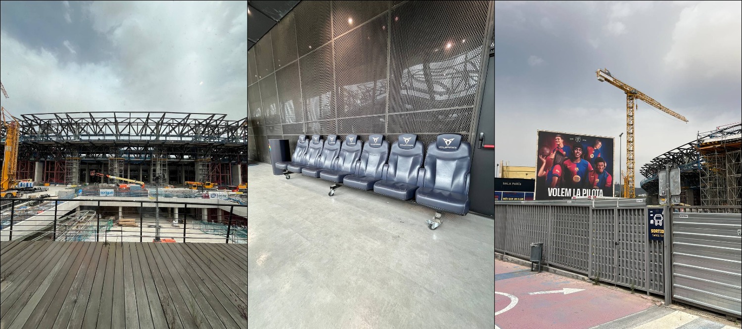 Immersive Tour располагается рядом с легендарным стадионом «Камп Ноу», который сейчас находится на реконструкции. Перед тем, как попасть в трехэтажных фаншоп «Барселоны», можно заглянуть на специально оборудованную смотровую площадку, посидеть в удобных креслах, что раньше использовали как скамейку запасных на старом «Камп Ноу» и собственными глазами увидеть, как проходит стройка. 1 мая был международный выходной в честь Праздника труда, но я посещал это место еще в сентября 2024 и видел, как заливали бетон и собирали железные конструкции будущей арены «Барселоны» – классная реализация, вход на смотровую бесплатный.