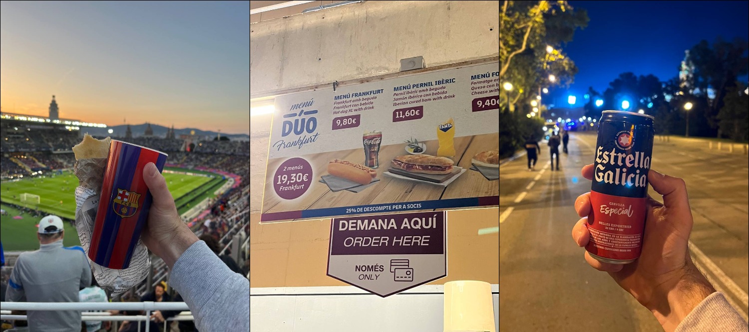 На футболе съел сэндвич с хамоном и сыром, запив колой – вышло 13,20 евро. Понятно, что дорого, но было вкусно – сэндвич был горячий, сыр тянулся, хамон тоже вкусный. А уже после матча взял банку испанского пива Estrella за 2 евро: это легко можно сделать, как только выходишь со стадиона и двигаешься в сторону метро. Тебя каждые 50 метров встречают пакистанцы, которые с радостью продают пиво, зарабатывая свою «копеечку».