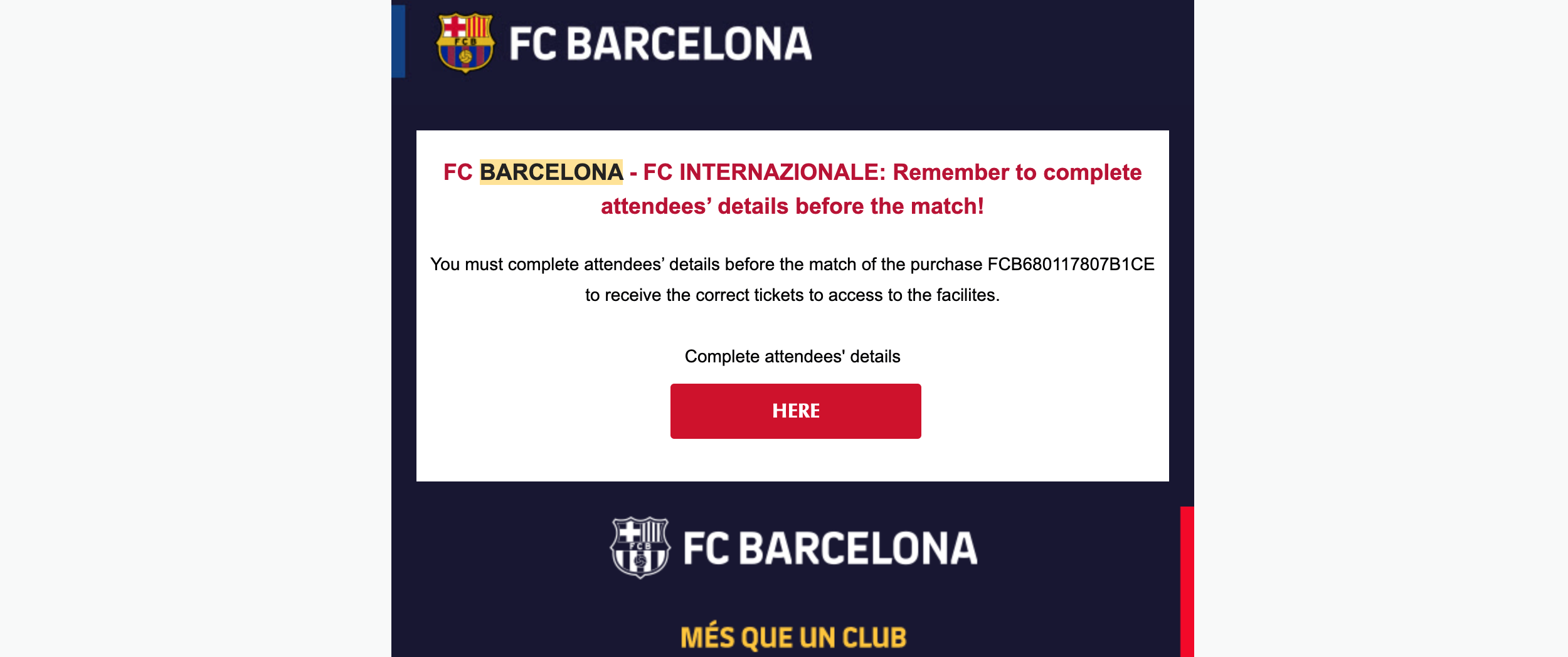 «Барселона» прислала письмо, что мне необходимо указать данные: ФИО, дату рождения, почту, документ, удостоверяющий личность и страну. Поскольку у меня есть итальянский ID, то указал его. Хотя порой в Италии я использую лайфхак, когда нужно попасть на какое-то региональное дерби, где действует запрет на посещение болельщиков из других регионов и указываю загранпаспорт РФ. Тут же не было заранее прописано никаких ограничений на эту тему. Но теперь точно стоит взять на заметку и за пределами Италии.