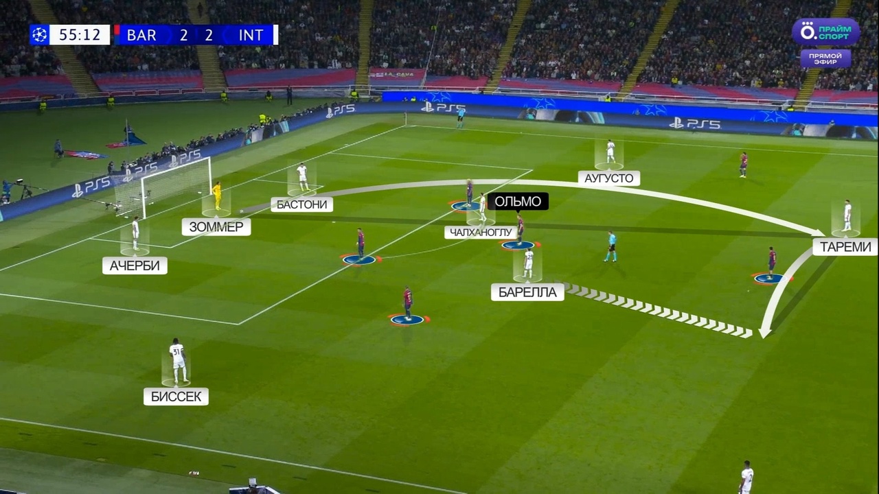 На мой взгляд, это сочетание факторов. Во-первых, «Барселона» за несколько дней до этой встречи провела изнурительный и эмоциональный финал Кубка Испании, где игра ушла в овертаймы. Если учесть, что на матч с «Интером» Флик полностью повторил стартовый состав с того финала, то в таком случае проседание «Барсы» в прессинге нисколько не удивляет. Во-вторых, в перерыве команда гостей получила возможность передохнуть и переосмыслить свою тактику – в том числе и билд-ап. В-третьих, у «Интера» произошла вынужденная замена – Тареми вместо Лаутаро (из-за травмы). И, как бы это абсурдно ни звучало, но с иранцем впереди «нерадзурри» стало легче выходить из-под прессинга.