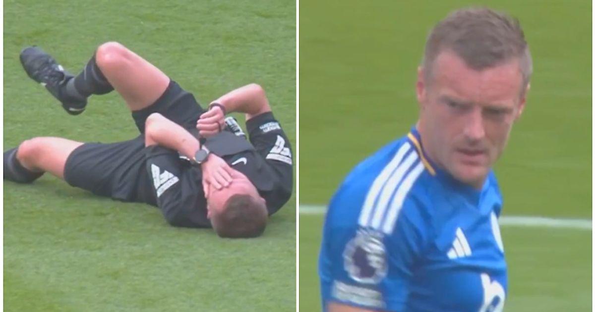 🎥 Судья матча АПЛ получил по лицу и упал на газон. Варди очень находчиво остановил матч
