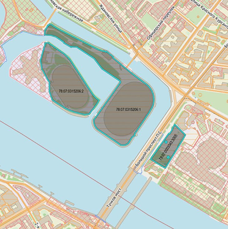 Территория для преобразования включает три земельных участка с кадастровыми номерами: 78:07:0315206:1, 78:07:0315206:2, 78:07:0003043:3005.