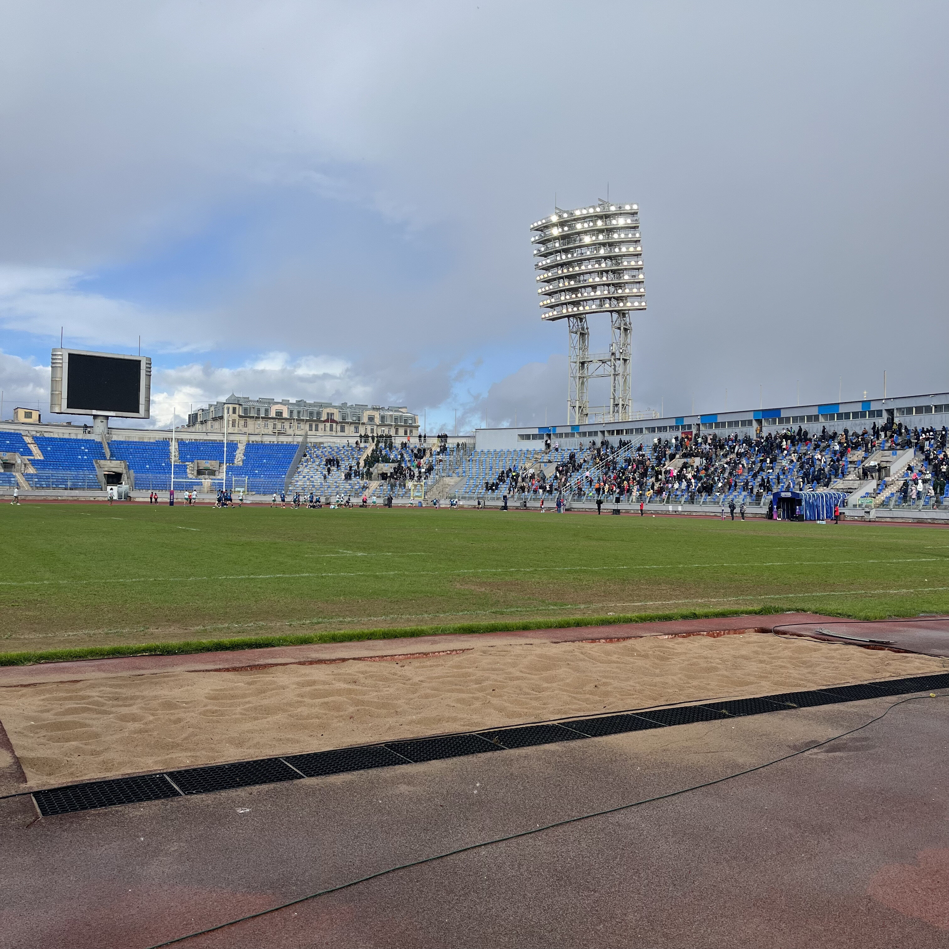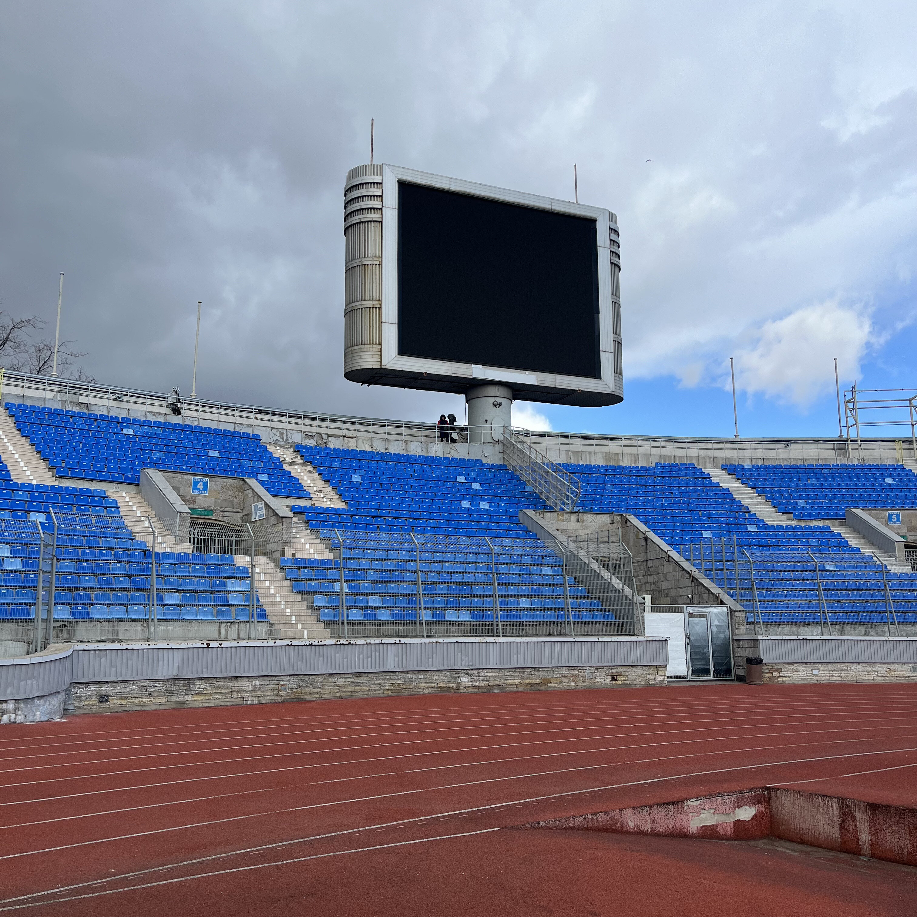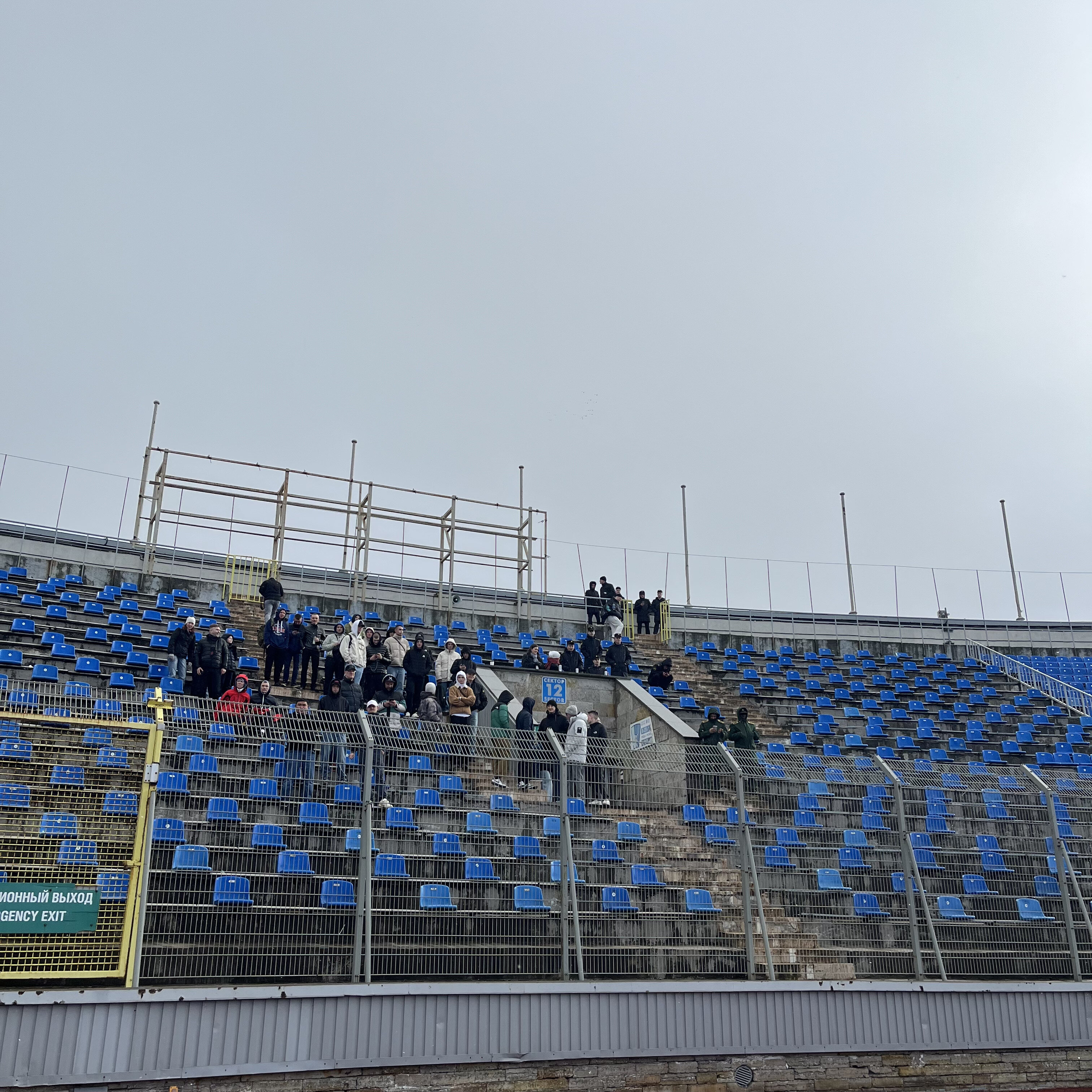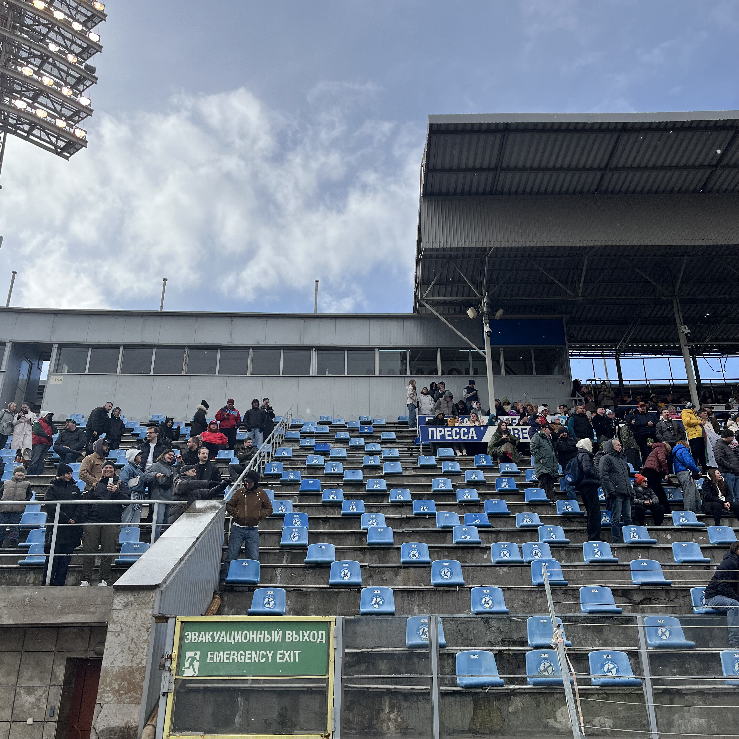 Захожу в чашу. Первое, что вижу – прореженные трибуны. На центральной (секторы с восьмого по десятый) снята большая часть кресел – осталось только каждое третье. Вероятно, в целях безопасности: чем меньше людей, тем ниже нагрузка на сооружение.