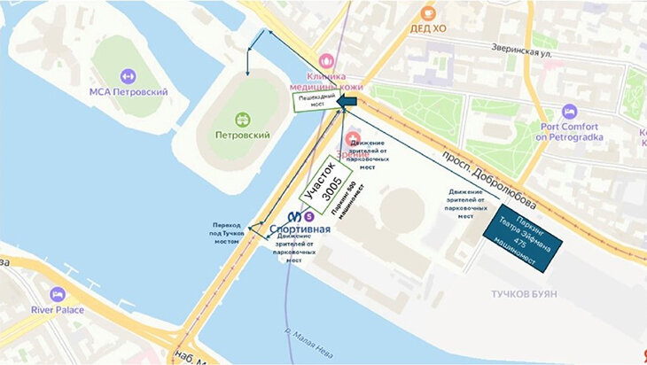 Кроме того, в рамках реконструкции стадиона предложили построить новый пешеходный мост и подземный переход под Тучковым мостом.