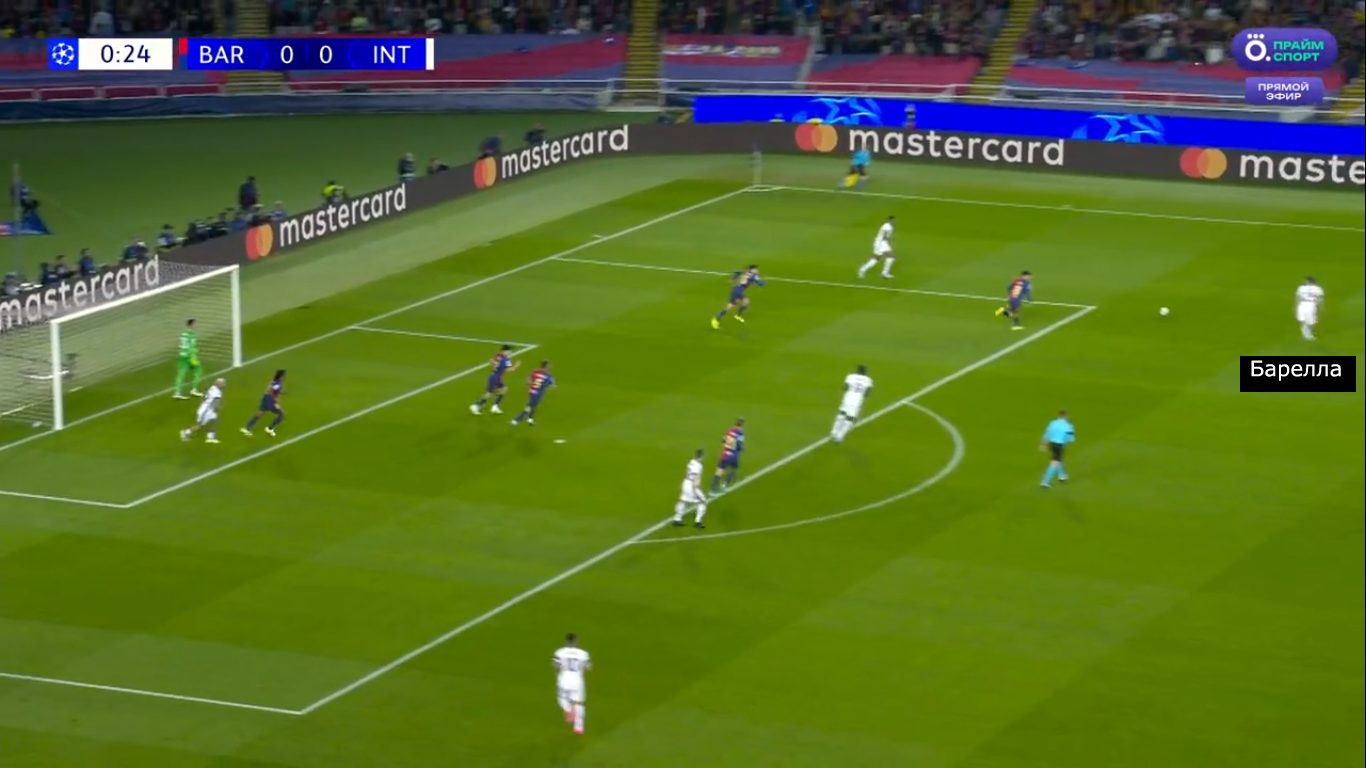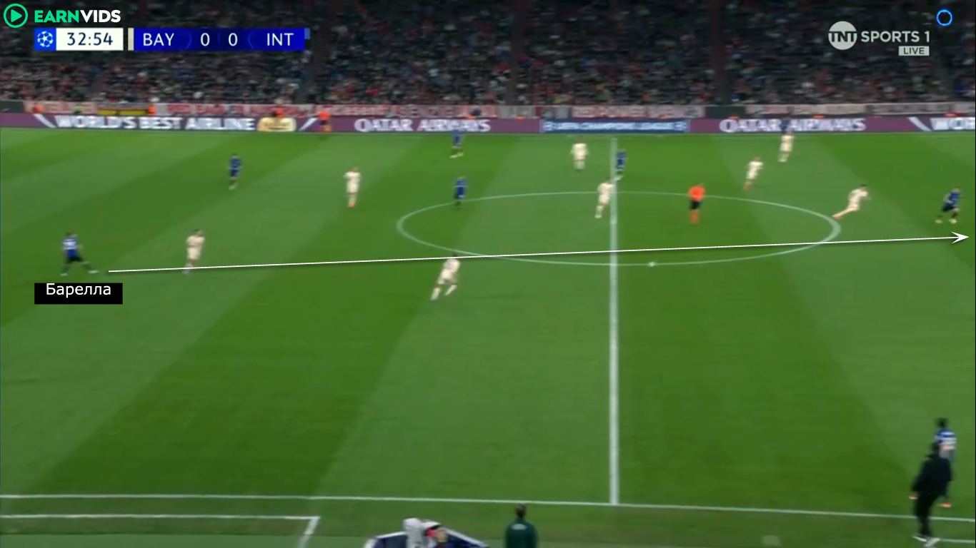 Ровно через три минуты Барелла оказался в центре защиты и в касание (!) отрезал всех полевых (!!) «Баварии» проникающей низом (!!!) через полполя (все, у меня закончились восклицательные).