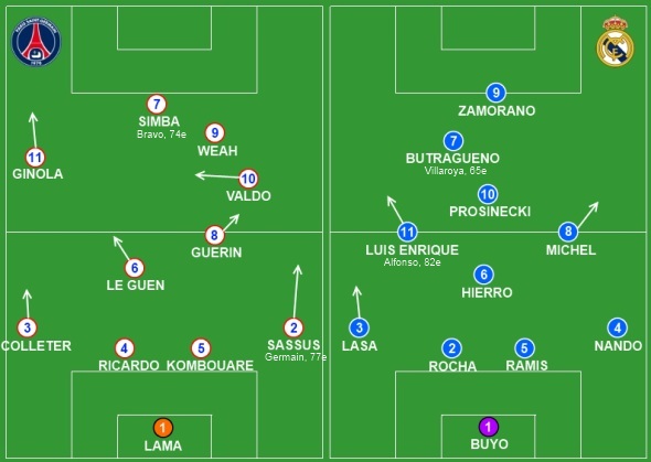 Этот счет уже устраивал парижан. А когда с передачи Жинолы Вальдо на 89-й минуте довел счет до 3:0, казалось, что интрига противостояния исчерпана. Но рефери добавил восемь (!) компенсированных минут. Нельзя сказать, что парижане расслабились- просто мадридцы играли до конца. На 94-й минуте при подаче со штрафного Саморано отыгрывает один мяч. Дополнительное время? Эмоции перехлестывают. Представляете состояния парижан, упускающих казалось верную победу. Ле Гуен так будет вспоминать об этом моменте: «Тогда, кажется, я позволил себе целую серию невероятных оскорблений. Я злился на себя, я злился на нас, я проклинал всех, небо падало на наши головы. Разочарование было огромным. Мне сразу пришло в голову, что мы будем играть дополнительное время». К счастью, парижане полны воинственного духа. В течении последовавшей минуты отчаянные попытки мадридцев лишить парижан мяча завершились назначением штрафного (на Жинола). Вальдо подает и защитник Антуан Комбуаре, вышедший в этом матче вместо дисквалифицированного Роша, точным ударом головы вгоняет в сетку гостей четвертый мяч (заодно исправился и за неудачную игру в эпизоде с голом Саморано).