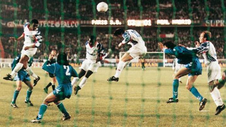 18 марта 1993, рождение Магии Парижа: «ПСЖ» – «Реал», 96-я минута, Антуан Комбуаре (крайний слева) посылает в ворота гостей четвертый мяч!