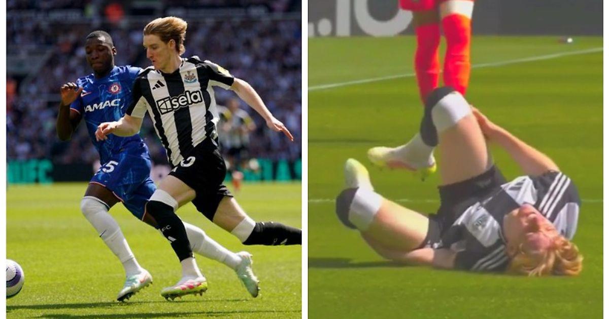 Счет «Ньюкасл» открыл уже на второй минуте, причем во время атаки произошел забавный эпизод. Энтони Гордон ворвался в штрафную, защитник «Челси» пытался отобрать мяч и, похоже, уронил англичанина. Судья пенальти не увидел, а вингер продолжил лежать на газоне и изображать адские муки.