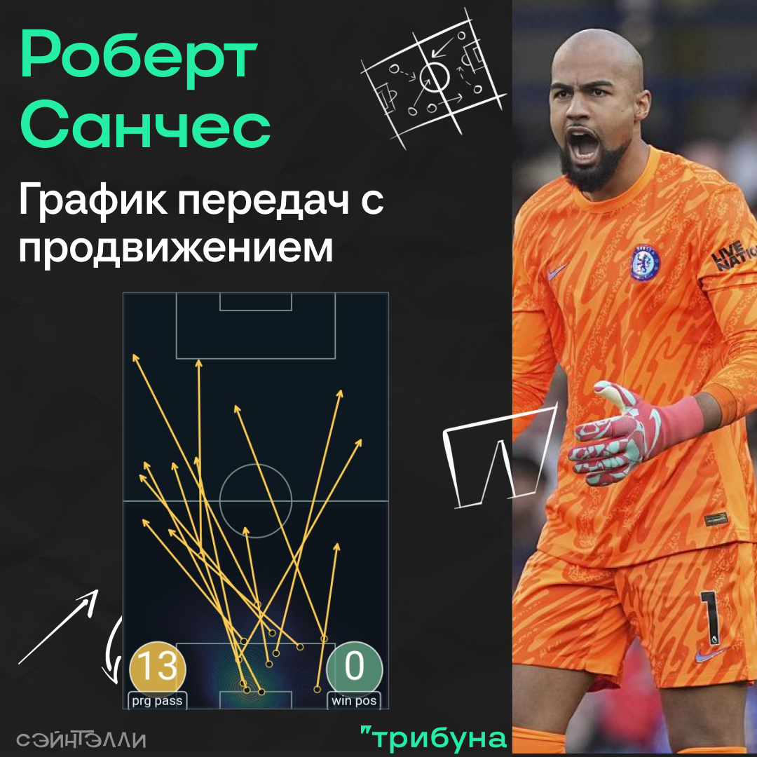 Впереди же создавалась ситуация «3 против 3», и единственный верный путь, чтобы не допустить обрез на своей половине поля – это длинные выносы вперед на Джексона, Мадуэке и Нету. Примечательно, что лидером по передачам с продвижением стал Роберт Санчес, у которого на счету 13 проникающих передач.