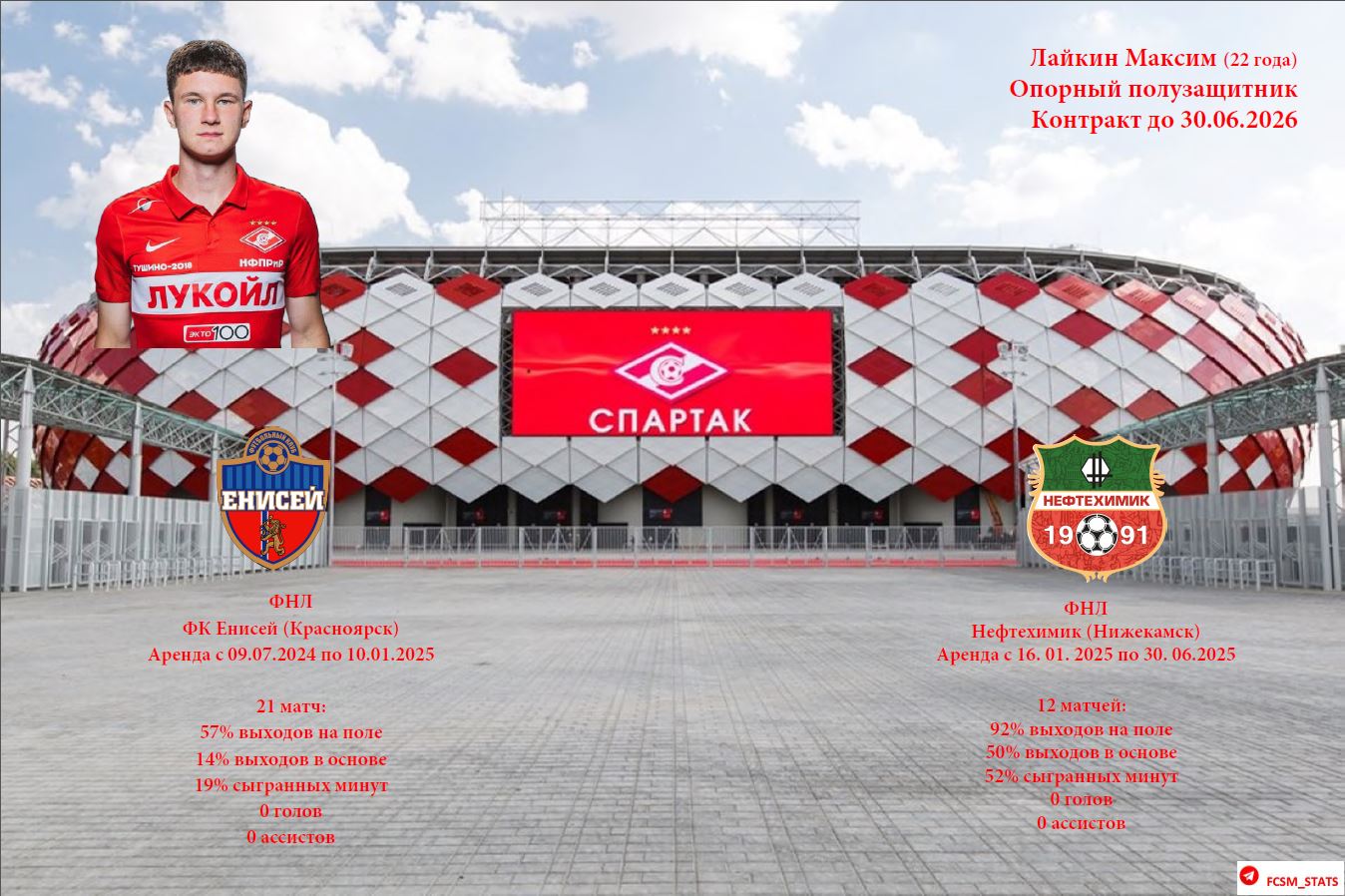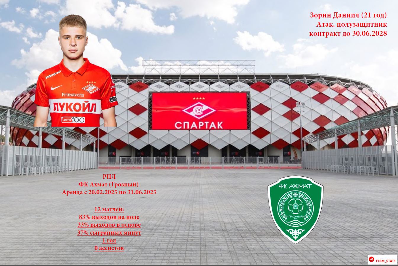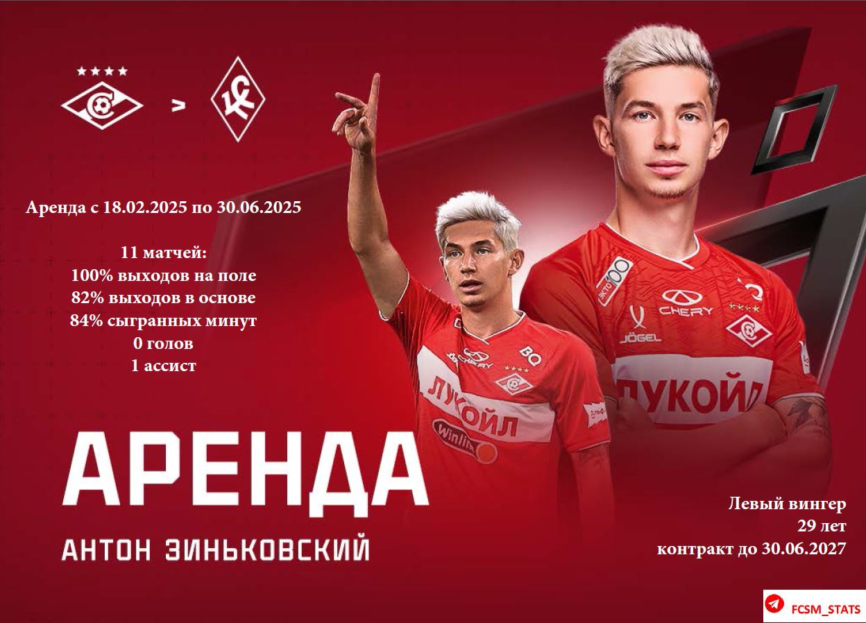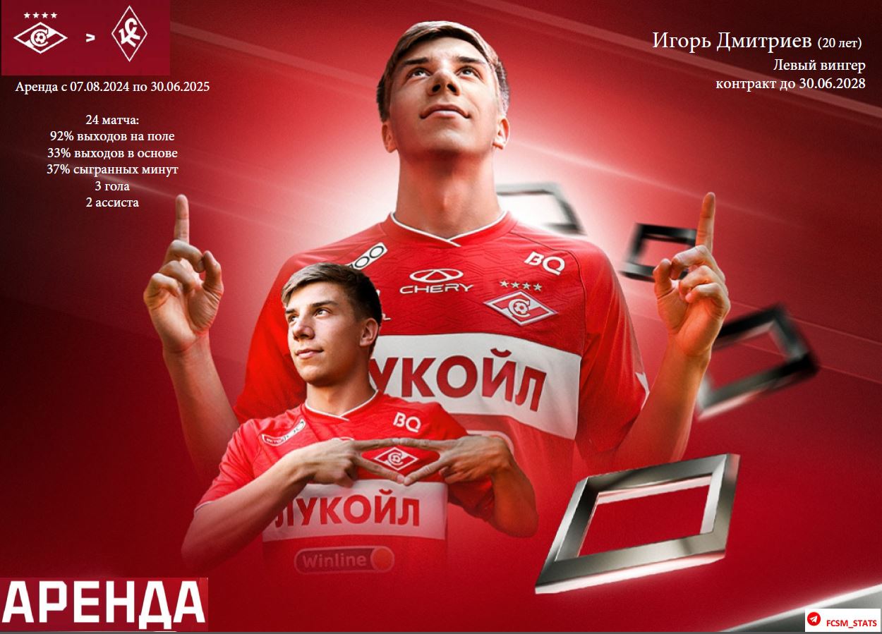 Статистика арендованных игроков ФК Спартак Москва в сезоне 2024/25