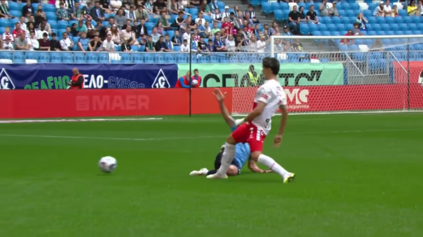 По стоп-кадру видно, что спартаковец сыграл в мяч (который уже улетел вперед), а бразилец со всего маху ударил по ступне соперника. Так что болельщики КС, упрекавшие в этом моменте судью, просто не разобрались когда их игрок совершил нарушение. По ожидаемым голам в итоге получилось xG 0,33-1,83, по голевым моментам BigChance 1-6, по ожидаемым очкам xPTS 0,26-2,58, что и соответствует победе минимум в 2 мяча - 0:2 в итоге.
