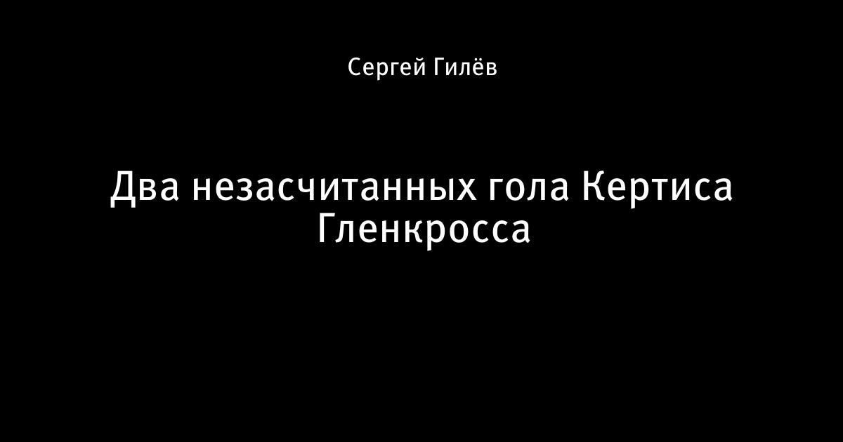 30 марта 2009, 10:44 Два незасчитанных гола Кертиса Гленкросса Автор Сергей Гилёв Этот пост опубликован в блоге на Трибуне Sports.ru. Присоединяйтесь к крупнейшему сообществу спортивных болельщиков! Другие посты блога Айс-ТВ