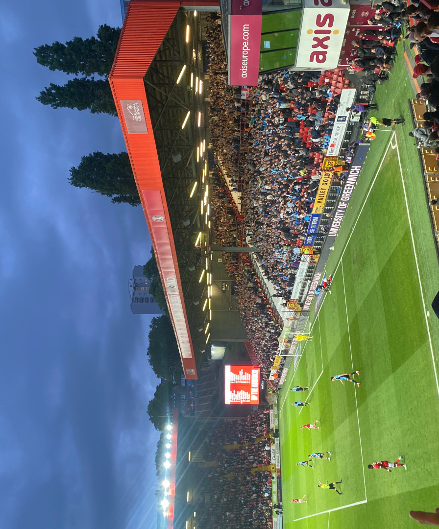 Приютившись в углу, посмотрел большую часть матча Спартак - Ростов и отправился собственно на стадион. Легендарный The Valley, о котором уже речь в этом сезоне шла, был естественно раскуплен полностью.