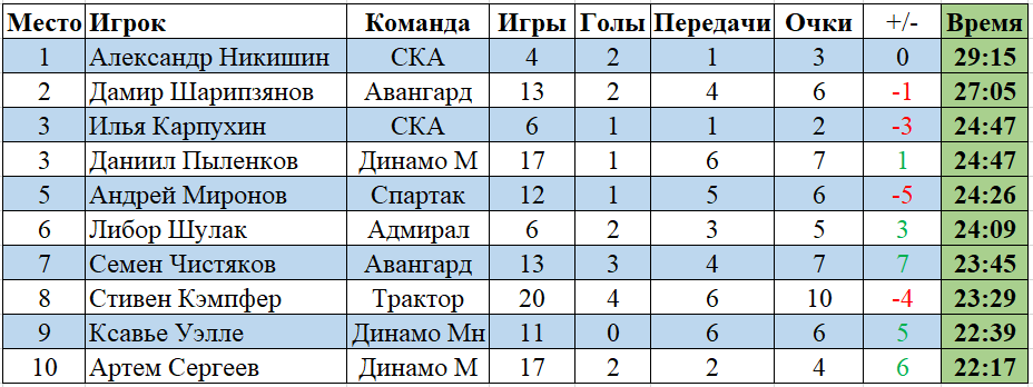 Стоит отметить Семена Чистякова («Авангард»), который в своей команде лидер по полезности с «+7», а следующий в команде Евгений Кулик, у которого всего «+3».