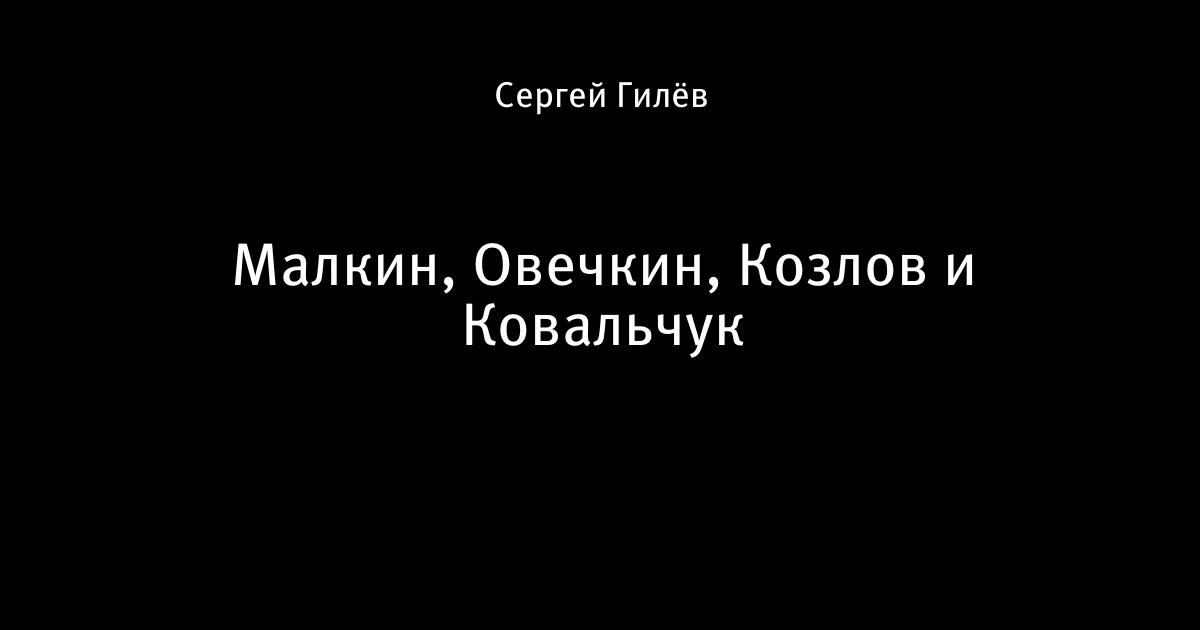 2 апреля 2009, 14:17 Малкин, Овечкин, Козлов и Ковальчук Россияне в НХЛ 1 апреля.Ковальчук. Козлов. Овечкин. Малкин. Автор Сергей Гилёв Этот пост опубликован в блоге на Трибуне Sports.ru. Присоединяйтесь к крупнейшему сообществу спортивных болельщиков! Другие посты блога Айс-ТВ